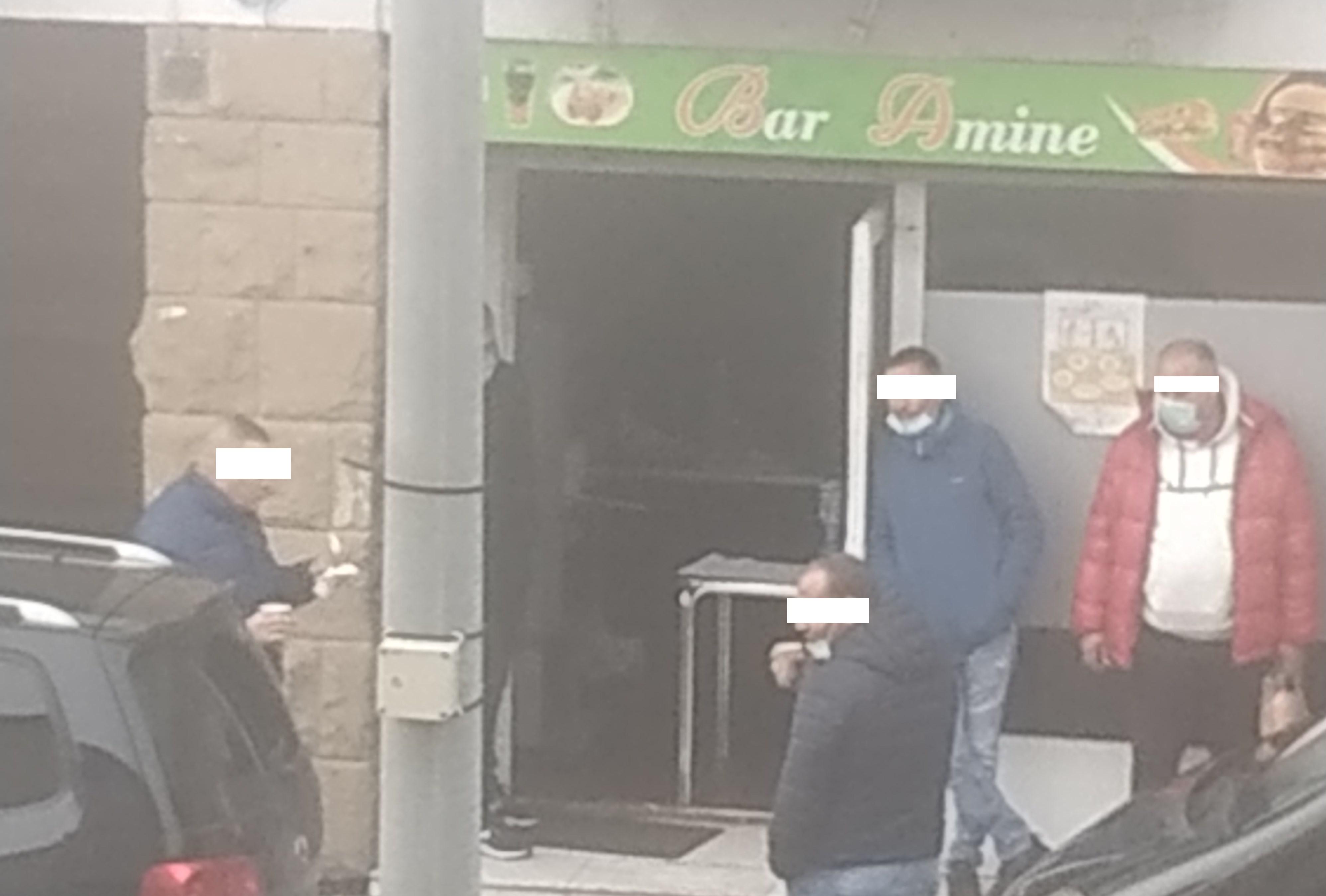 Després ens preguntem per què Vic és la ciutat on hi ha més contagis, foto d'aquest matí, hi ha poca gent, ocupen davant la porta del bar i la propietat privada de la farmàcia S'usa. Veïns cansats i decebuts del poc cas que ens fan.