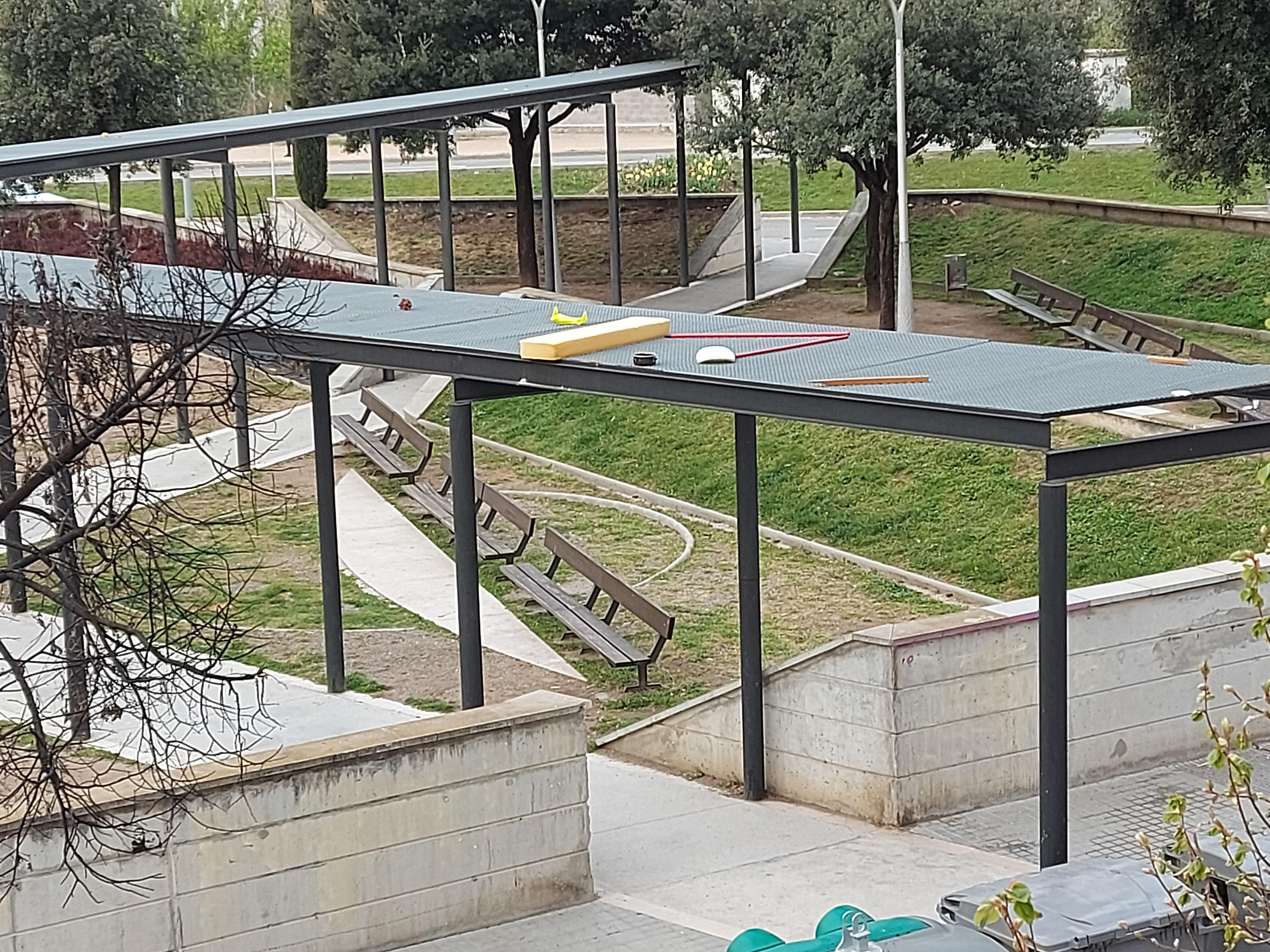 Agrairia, tan bon punt els sigui possible, facin passar la brigada de neteja pel parc de l'Horta de la Sínia. Als travessers que fan de sostre, algun incívic s'ha dedicat a penjar-hi els objectes de rebuig deixats als containers que hi ha just al davant. Hi ha de tot penjat "al sostre" , fins i tot un parell de bambes . Podrien venir a netejar-ho? Donat que a algú li agrada portar "la contrària", no sé si seria bona opció desplaçar els containers uns metres, per tal que no els tinguin tan a prop i tan fàcil de tirar les coses enlaire per divertir-se... Els adjunto foto perquè en tinguin constància. Fóra bo, una actuació ràpida per tal d'evitar que això vagi a més.