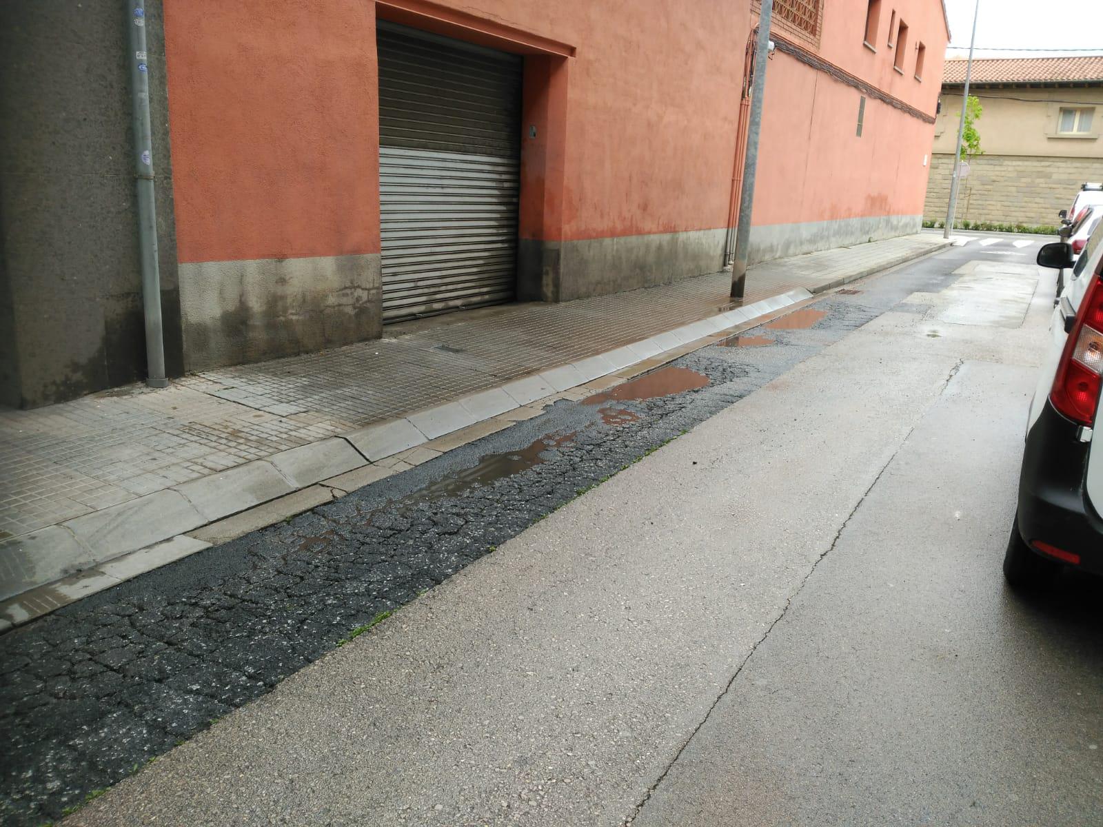 Ens hem posat diverses vegades en contacte amb vosaltres pel mal estat que presenta l'asfalt del carrer Bellmunt, a l'alçada del número 6 cap endavant. Fa relativament poc es va pintar la façana, i quan plou tota l'aigua s'esquitxa a la porta i a la paret, i entra dins del portal (adjuntem foto). Les vegades que s'ha reparat només s'ha fet amb una mica de quitrà que porten els de la brigada, però no serveix de res, perquè al cap de quatre dies el forat torna a estar igual. En anteriors ocasions se'ns havia dit que hi havia la previsió d'arreglar el carrer l'any 2020, però encara no s'hi ha fet res. Esperem que aviat es procedeixi a la reparació esmentada.