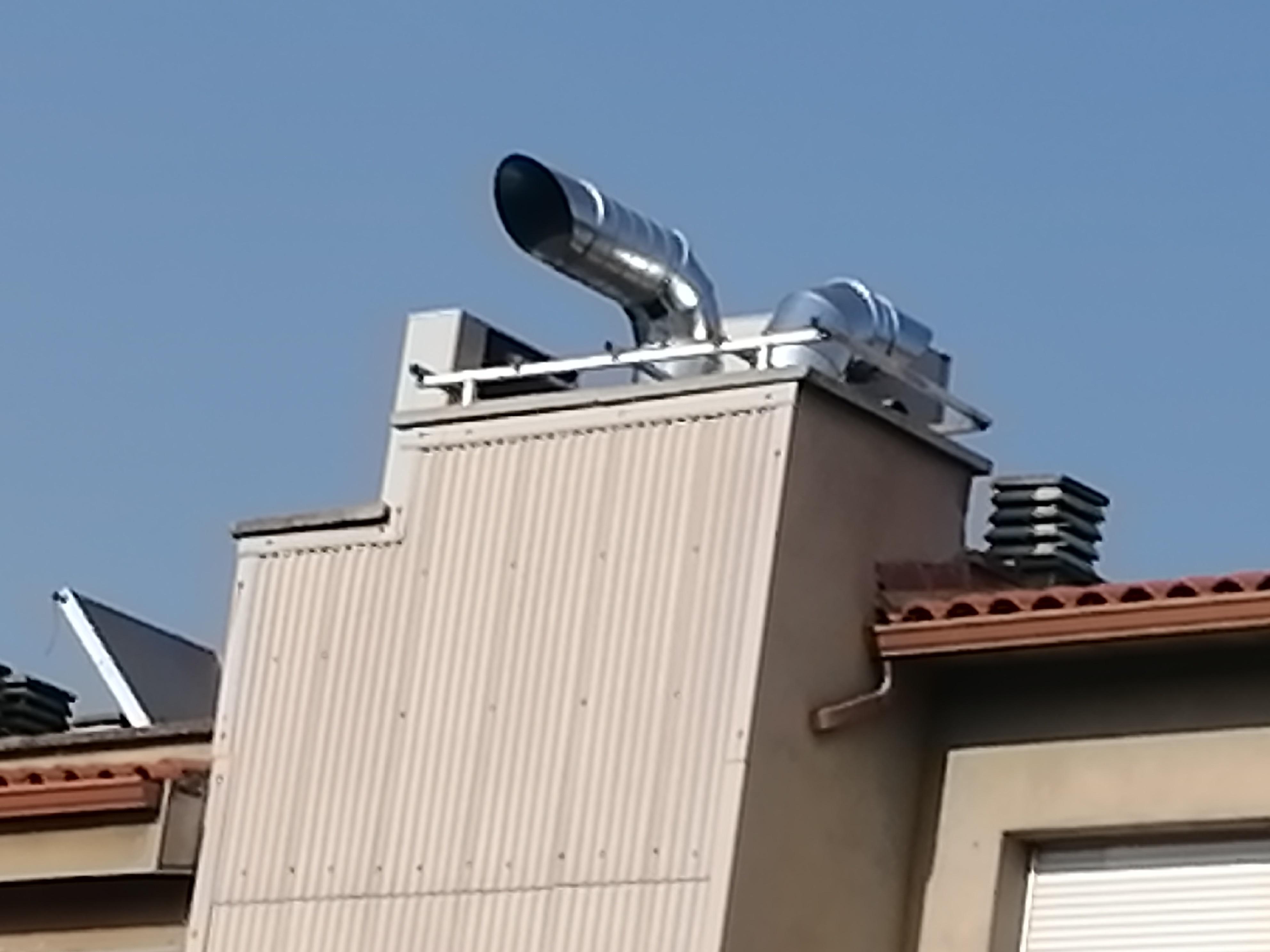 Bona tarda. Ens han instal·lat una mena de xemeneia o sortida de refrigeració a la teulada de l'edifici del costat. És un canó de dimensions considerables que aboca el que sigui que en surt directament als patis i les terrasses on sortim molts veïns. No estem massa tranquils, però a més fa un soroll molt molest, que hem estat suportant 48 hores seguides, dissabte i diumenge. I no sabem ni què és ben bé, ni que ens tira al damunt, a més de la molèstia del soroll. Adjunto foto del canó, els patis queden a sota. Jo visc al carrer Raval Cortines, i l'edifici en qüestió té l'entrada pel carrer Torelló.