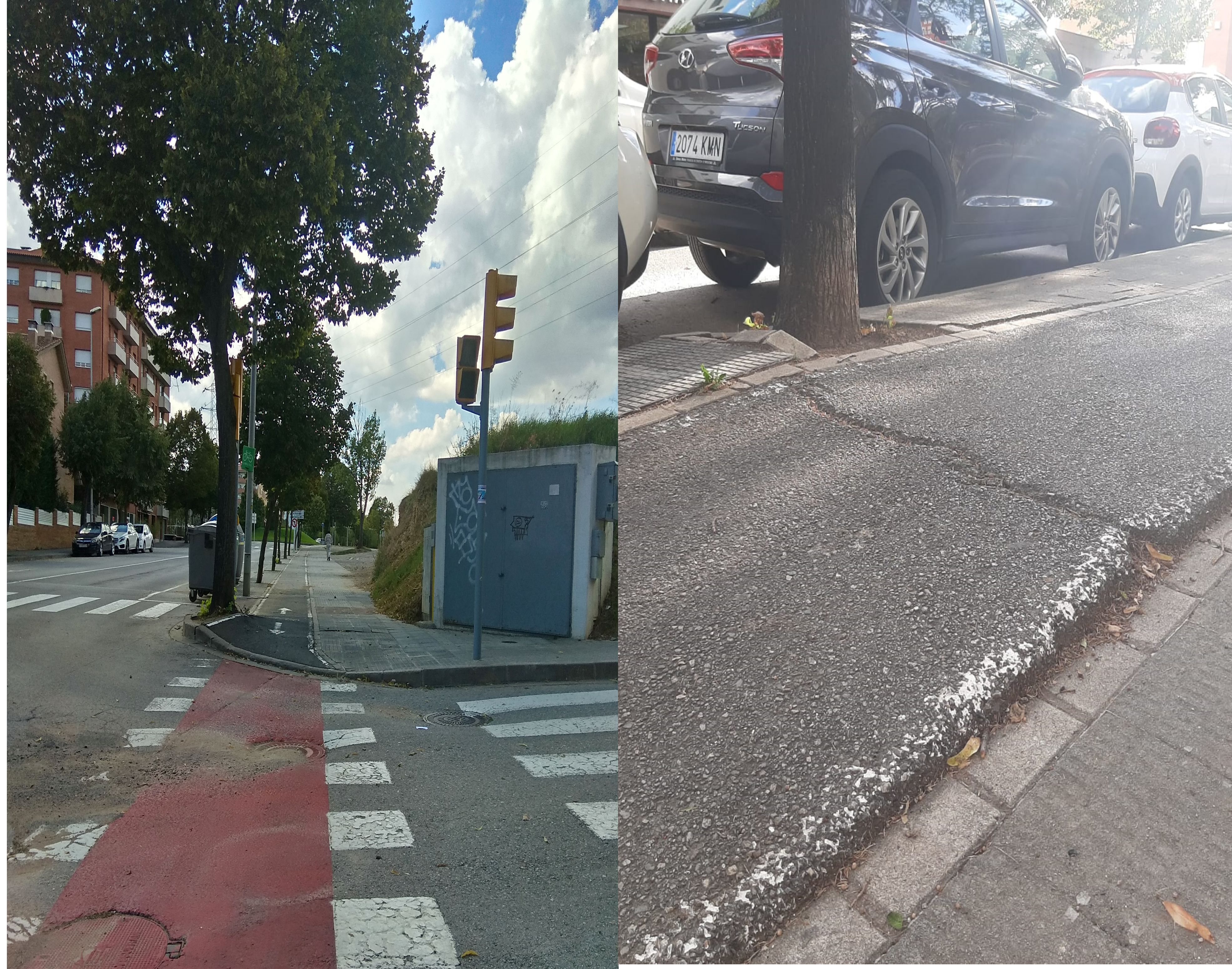 Exposo: ● Que visc a Vic per raons d'estudis i faig ús de les vies públiques de la ciutat. ● Que em desplaço amb cadira de rodes i motor elèctric (batec) pels carrils bici proporcionats i en cas d'absència o mal estat d'aquests, per les voreres. Demano: • Que es faci revisió dels diferents accessos per als quals passo i faig ús diàriament esmentats a continuació: - Pas zebra del carrer del Pirineu, en el que hi ha un impediment a l'hora de creuar degut a l'aixecament, per una arrel d'arbre, de l'asfalt del carril bici i la vorera. -Tram carril bici, situat al carrer de la Sagrada Família a la vorera contrària de la universitat.