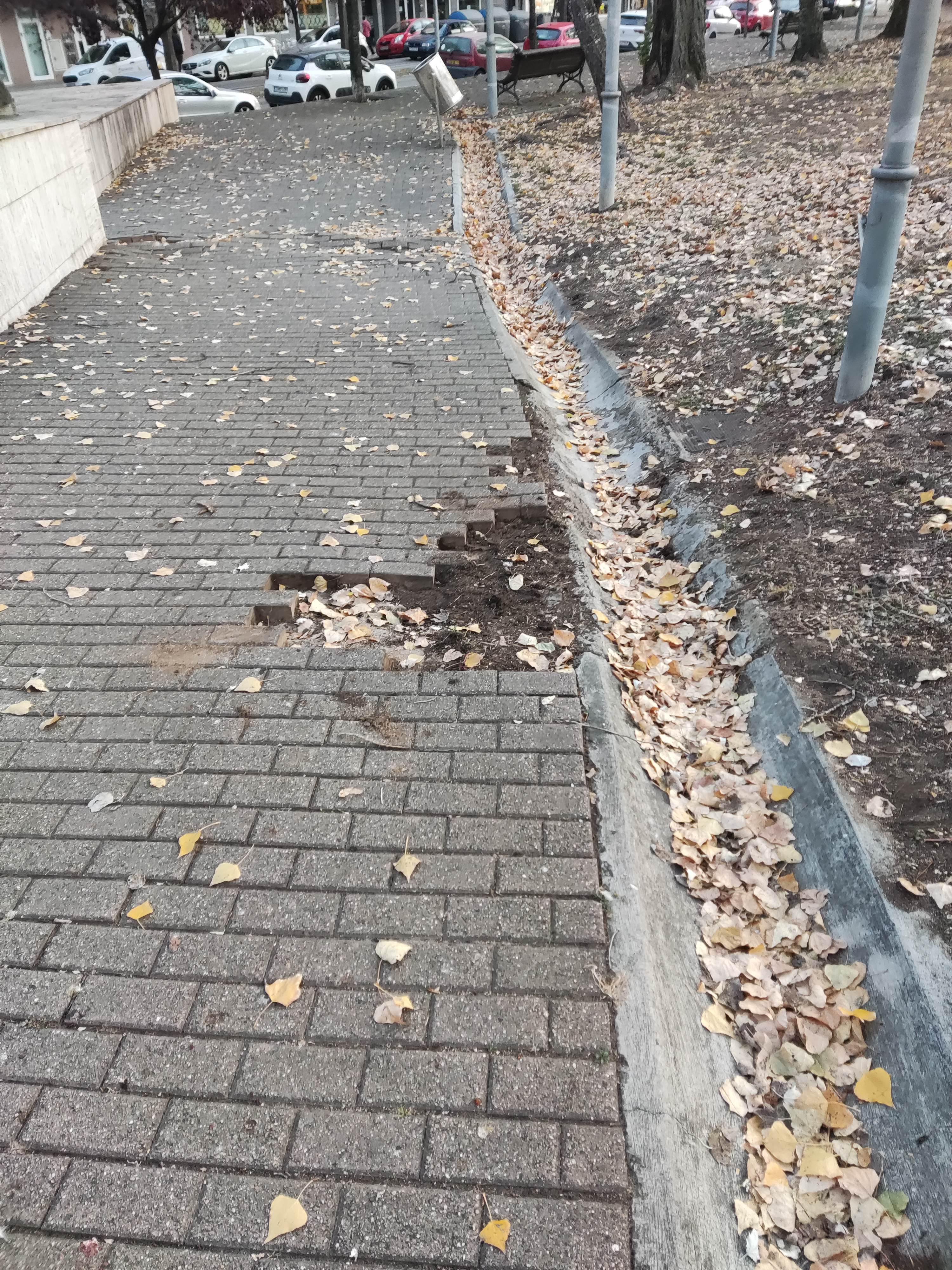 Hem passat avís a l'àrea de manteniment, que repararà aquest tros. En aquesta zona hi tenim problemes, ja que l'arbrat que hi ha a la zona verda (pollancres " populus nigra ") ja fa molts anys que està plantat i les seves arrels fan malbé el paviment i també la zona verda.
