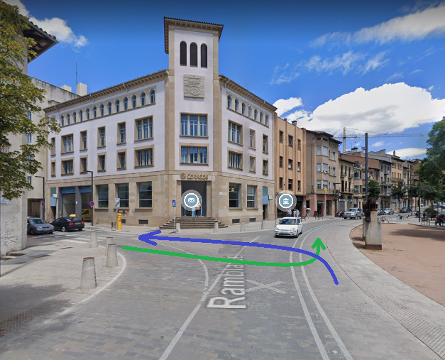 A la cruïlla entre la rambla de l'Hospital i el carrer Dr. Junyent, davant de Correus, el carril bici de la Rambla (sentit pujada) no permet desviar-se cap al carrer Dr. Junyent ni incorporar-se al carril bici venint des d'aquest, tal com està representat a la imatge en colors blau i verd, respectivament. Seria convenient fer alguna modificació de la senyalització horitzontal per fer possibles aquests moviments. Especialment el primer, és força utilitzat, ja que forma part de l'itinerari entre els barris del sud i la zona de l'estació sense haver de fer la pujada de la rambla de l'Hospital.