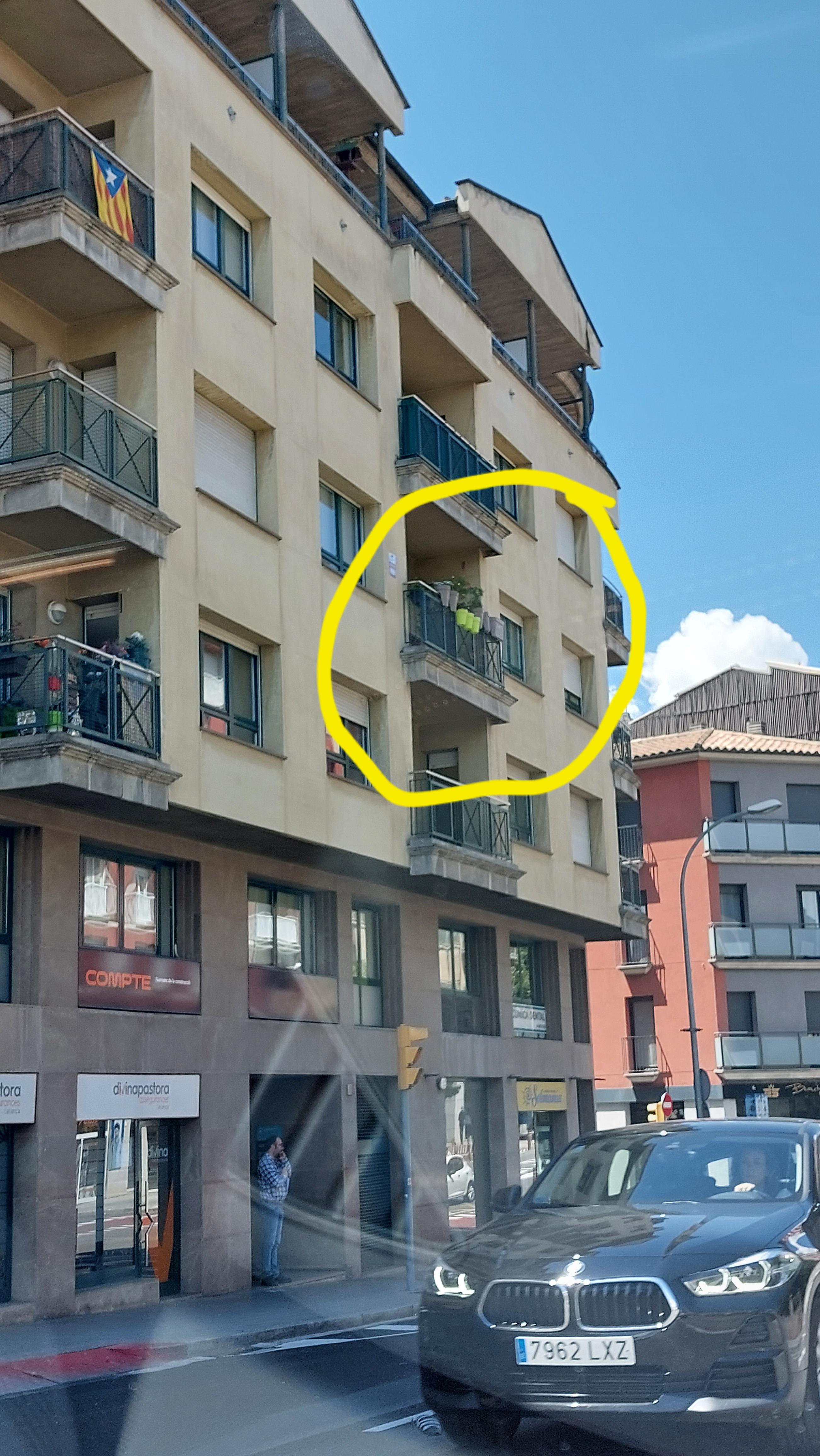 A la ronda Camprodon número 13, al 2n pis, hi ha una finestra amb unes torratxes penjades per fora, hi veig un perill que algun dia li caiguin a algun vianant pel cap.