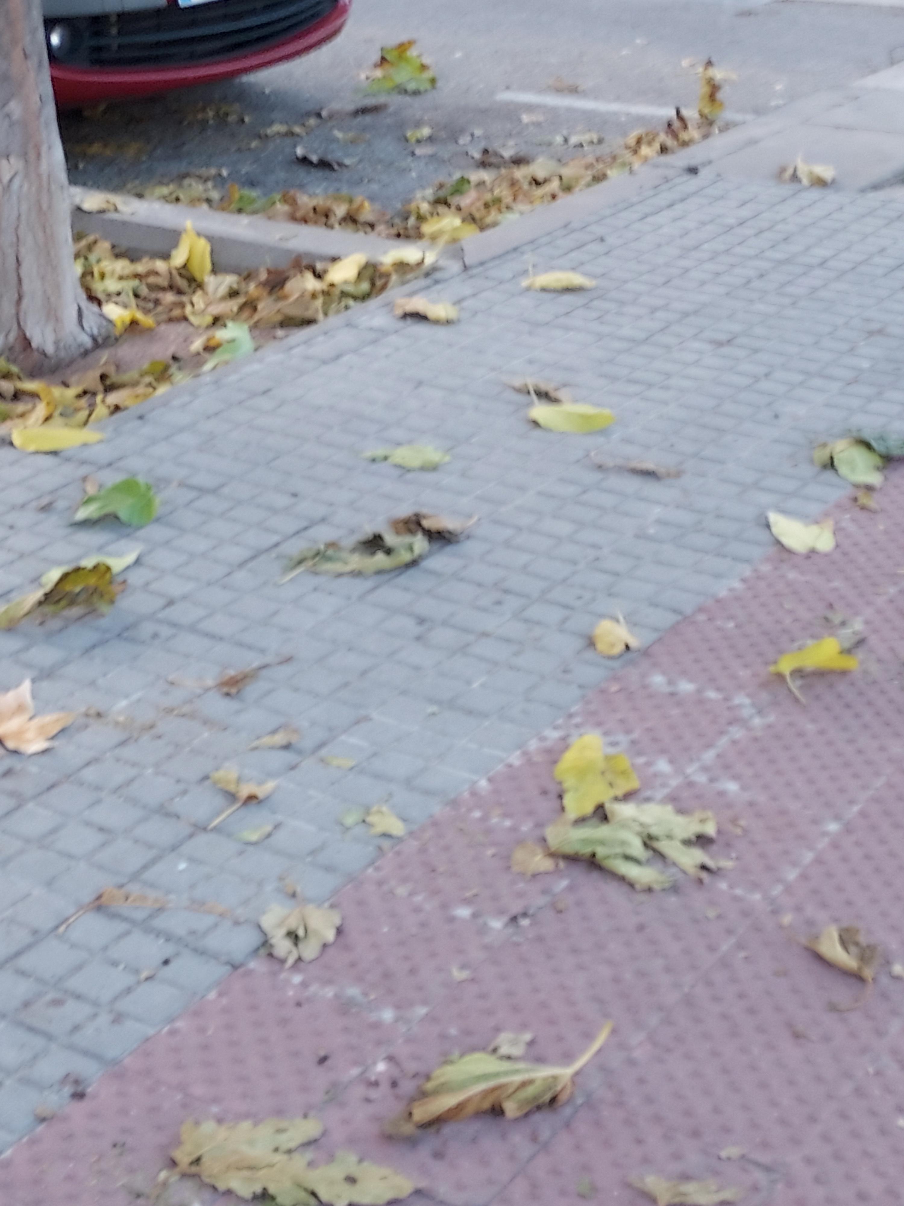 En aquesta època que hi ha caiguda de fulles i ens les trobem als carrers i a les places de la ciutat. Tot i que les fulles no són brutícia, el servei de neteja les va recollint i retirant de la via pública, segons la programació establerta, i a vegades la neteja es pot alentir perquè les màquines escombra queden plenes i s'han d'anar a buidar, però en aquest barri no hi ha hagut canvis ni de servei de neteja ni de freqüència de pas pel barri, no obstant traslladem la queixa al servei.