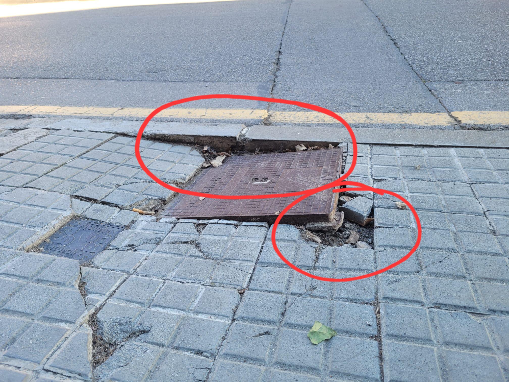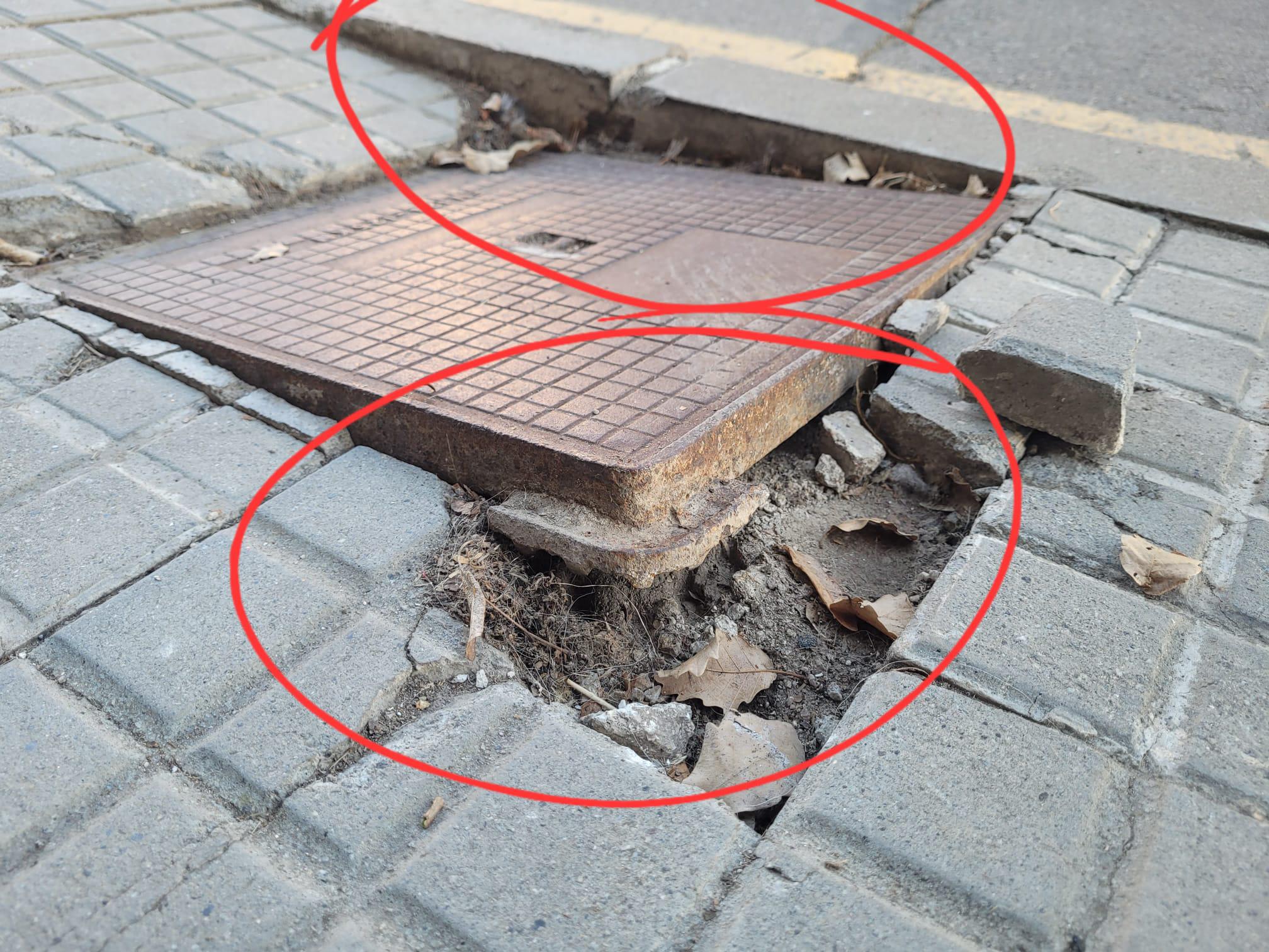 Just davant de la porta d'accés al bloc de pisos núm. 32-34 del carrer de les Escoles, s'està enfonsant la vorera i amb ella una tapa metàl·lica. Fa dies que està així, i ha començat a sobresortir part de la tapa metàl·lica i part de la vorera, i és un perill constant d'entrebancar-se pels vianants. Agrairia que passeu nota amb urgència a la XSU abans que algú prengui mal. Gràcies.