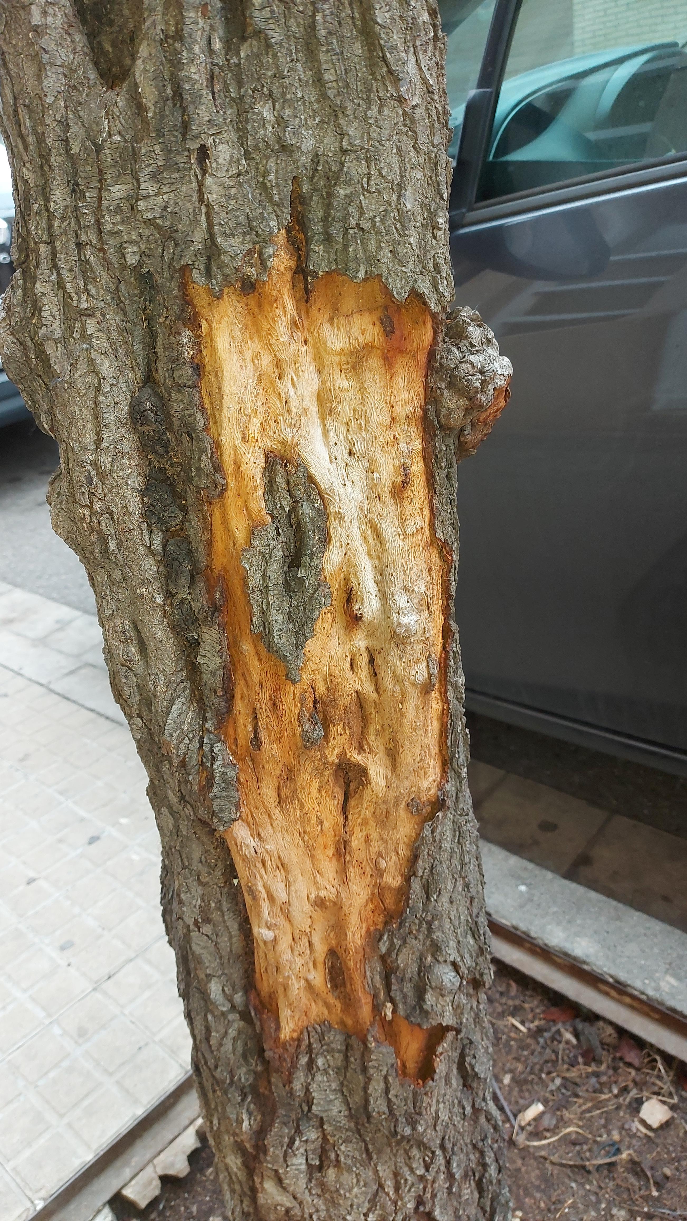 L'arbre està tot corcat i podria trencar-se una branca i caure, carrer de la indústria 31.