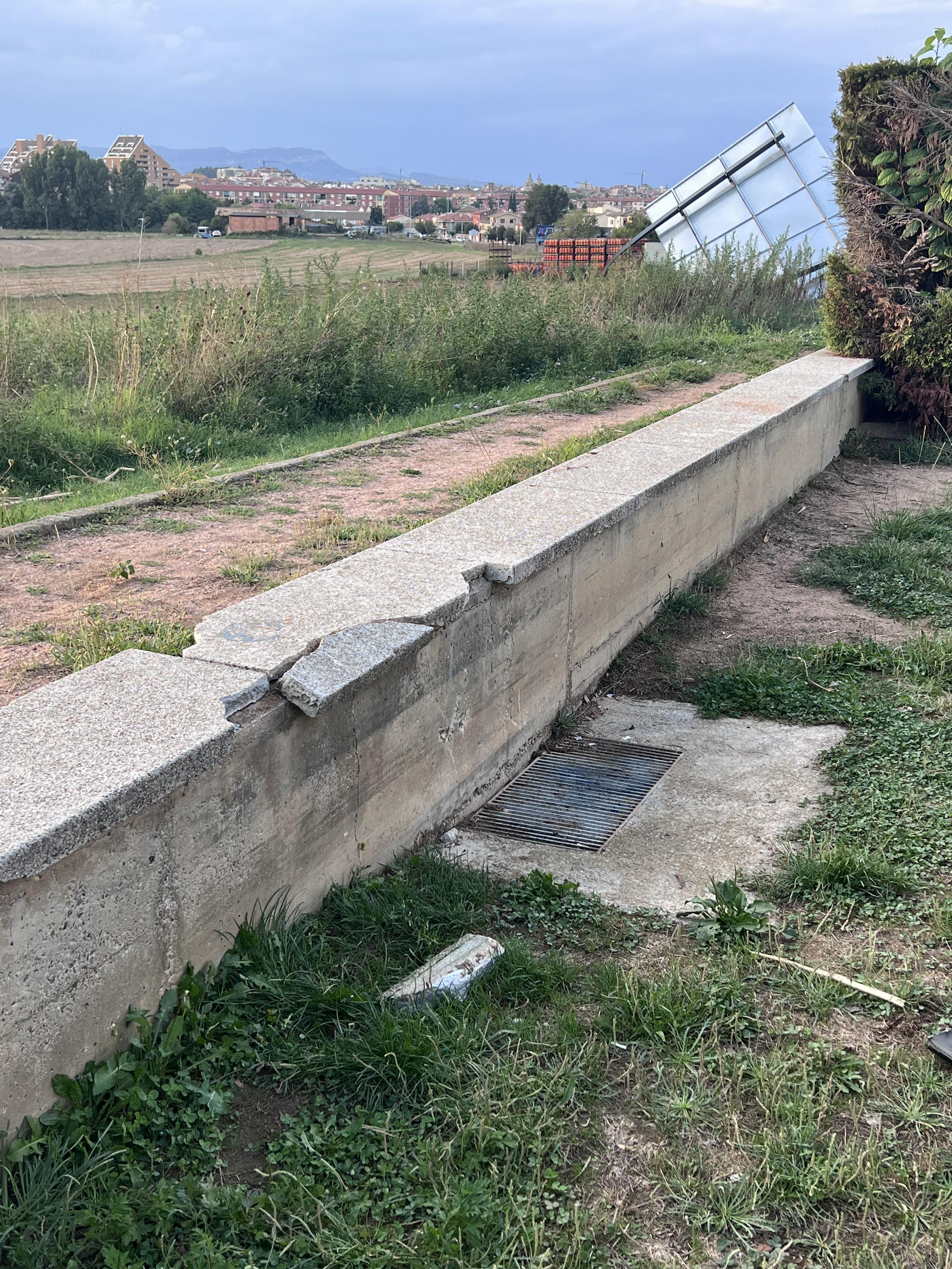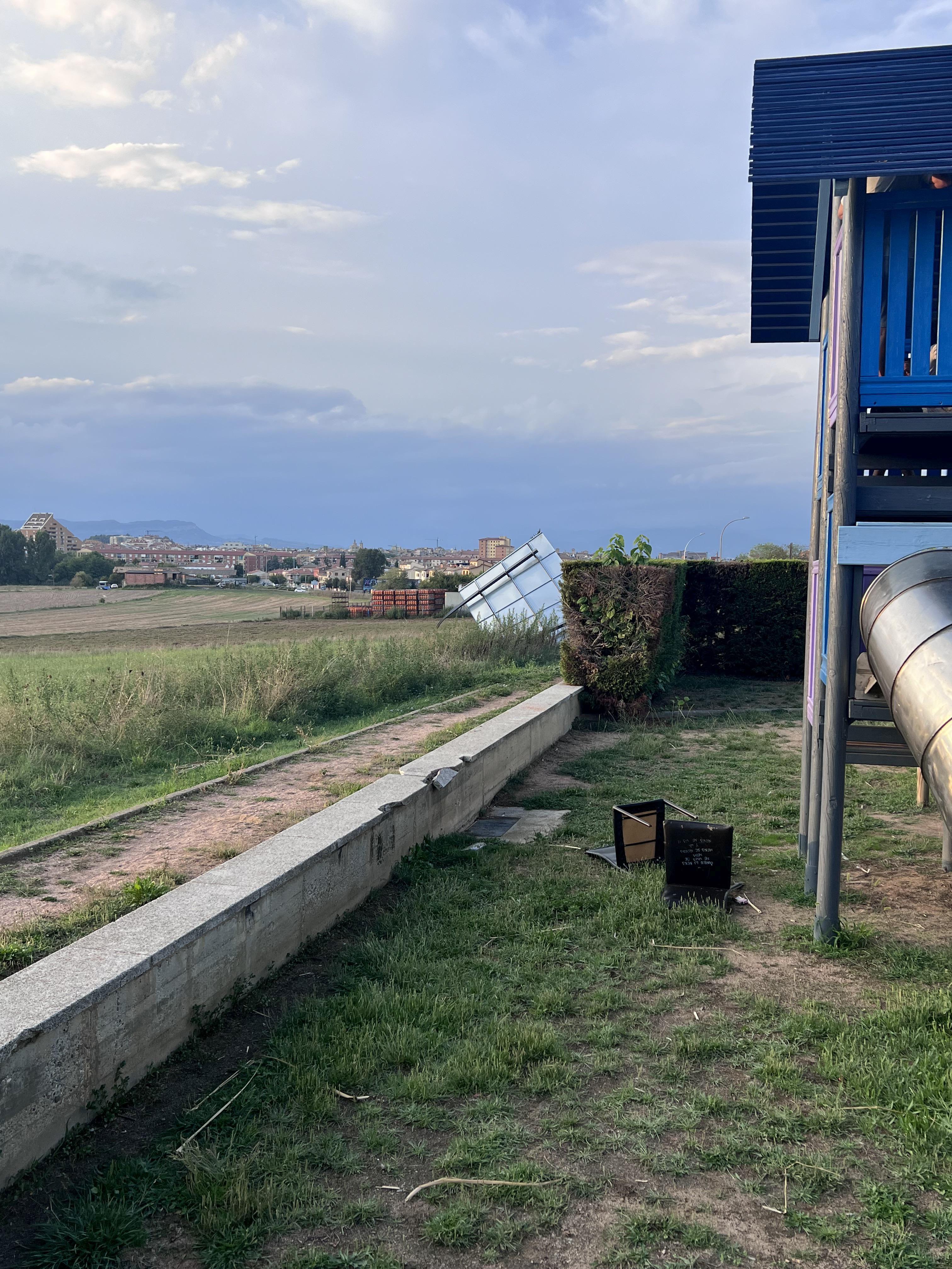 Com mostren les fotografies, hi ha un cartell publicitari mig caigut prop del parc de davant el Salarich, dins el parc mateix hi ha dues cadires abandonades i també hi ha una part de padrís trencat.