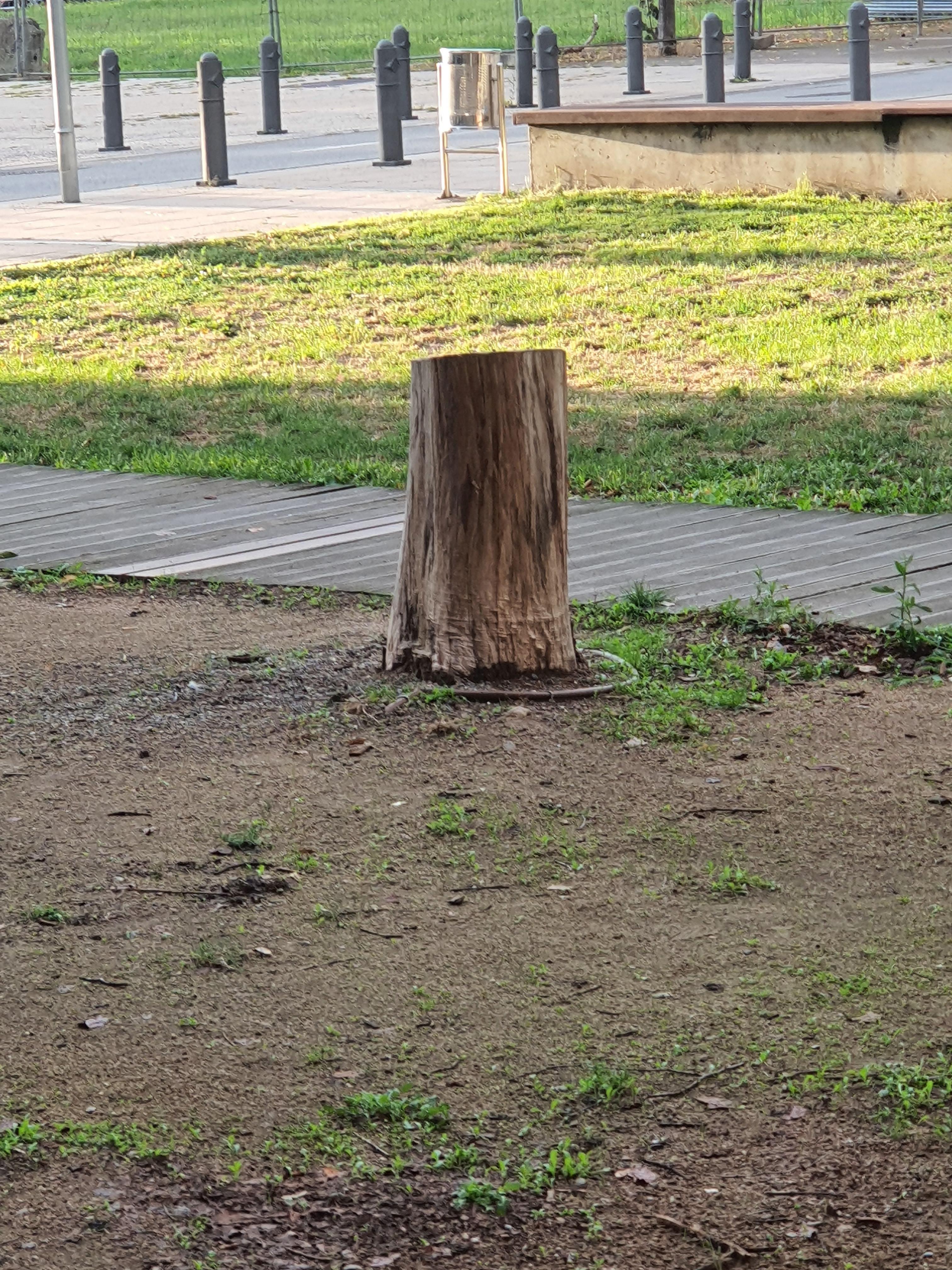 El motiu de deixar la part inferior del tronc és que sigui visible i, així, evitar entrebancs fins que no es pugui retirar i substituir l'arbre mort. Tenim present que aquí hi falta un arbre i, en la mesura del possible, se substituirà en properes campanyes de reposició d'arbrat.