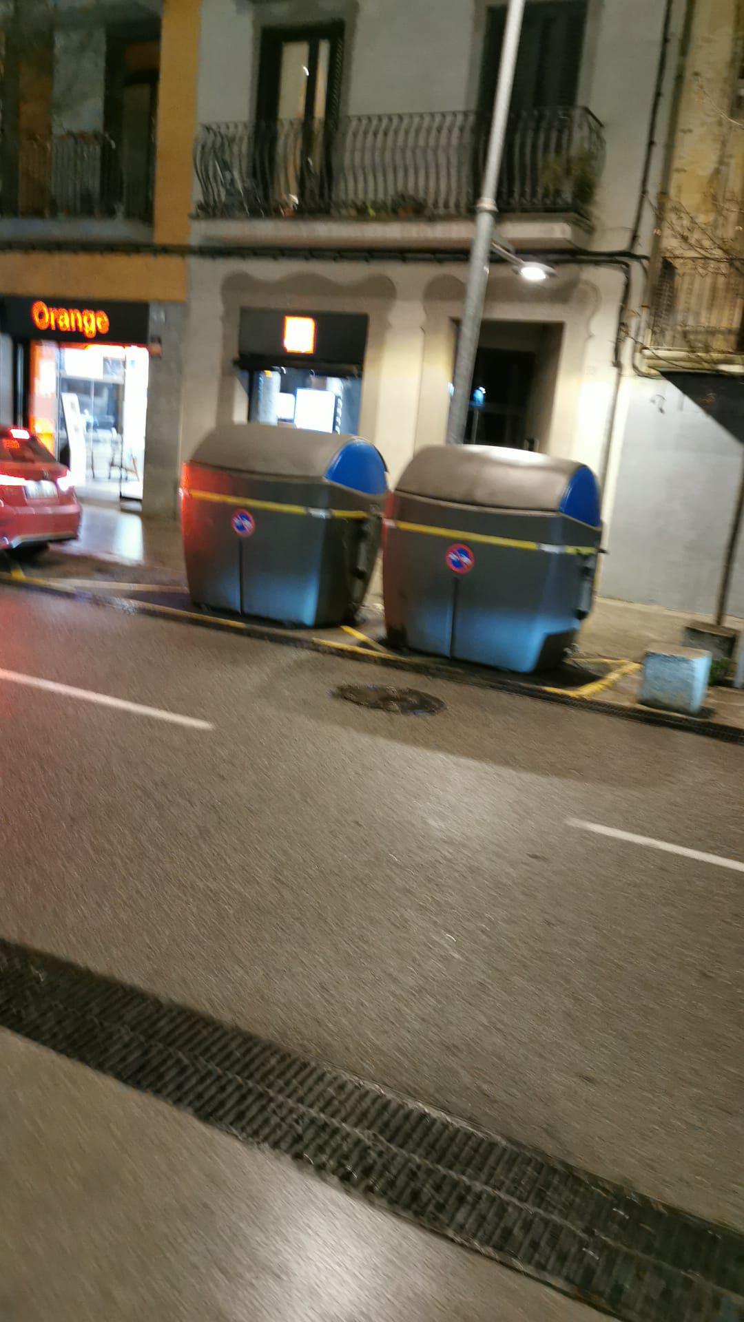 S’han col·locat aquests dos contenidors a la zona de càrrega/descàrrega del Passeig a l’alçada del núm. 13. No essent el seu lloc, es demana que es retirin o bé que es traslladin al lloc adient per aquest servei. Gràcies.