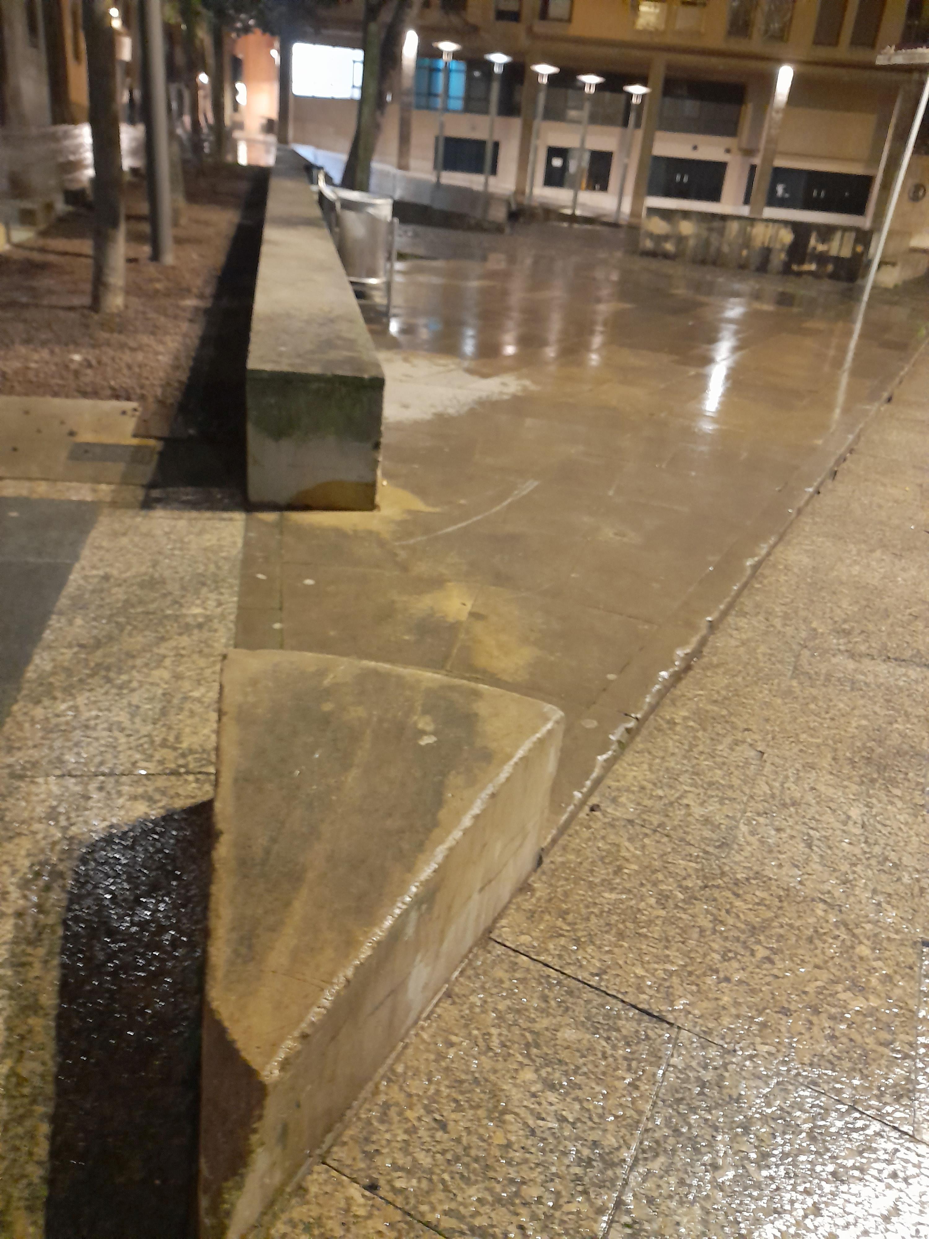 Perill de que la gent ensopeguem i caiguem per causa del triangle de pedra, vegeu foto... de nit pitjor.