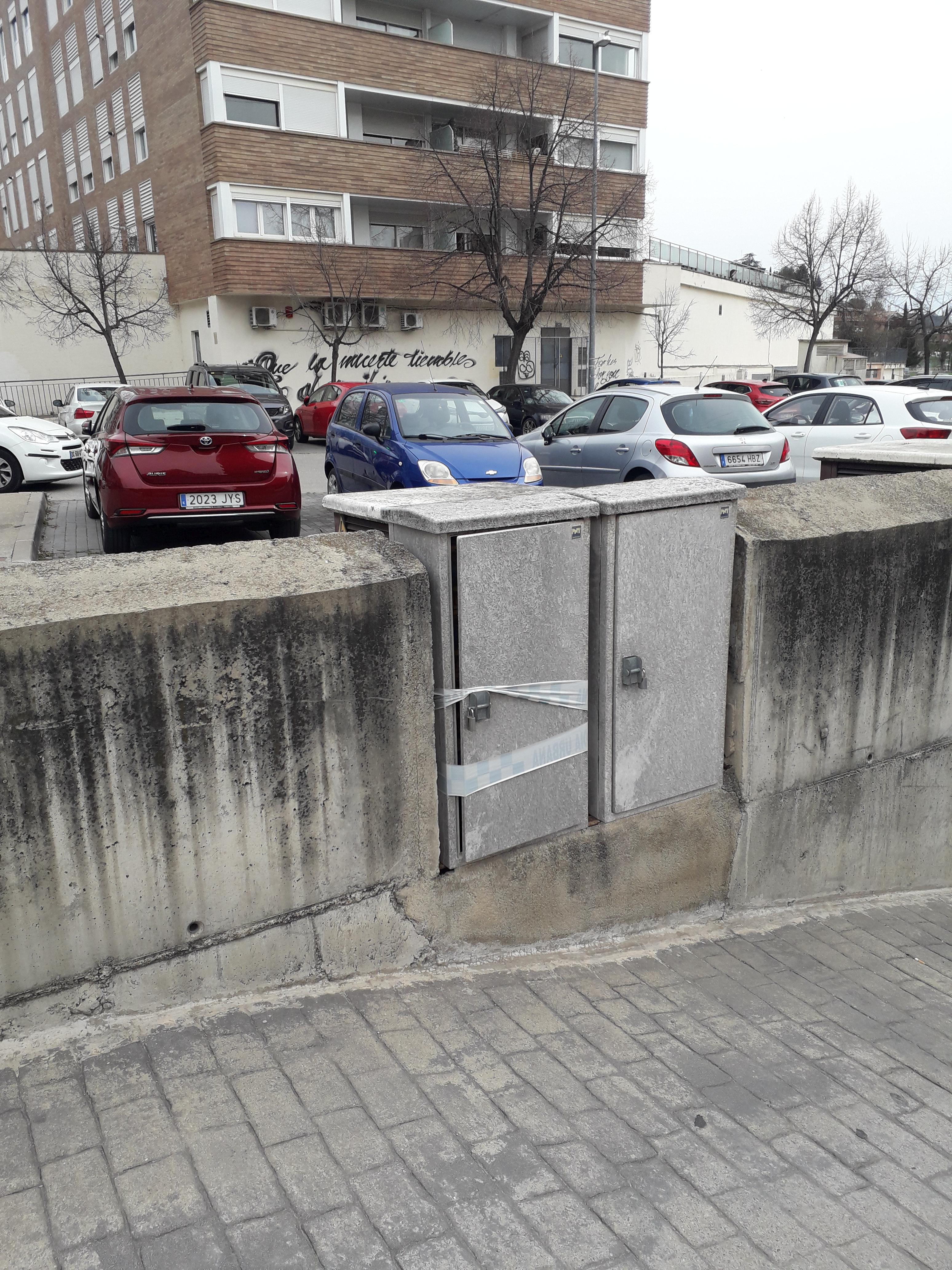 A la cantonada de l'edifici c/ Bisbe Font Andreu, núm. 40, a la zona dels transformadors d'electricitat, hi ha un armari (propietat d'Endesa) que es troba mig obert des de fa molt temps. Amb el risc d'electrocutament que pot comportar. Els Municipals el van precintar un dia que un veí els ho va comunicar. Agrairíem que ho comuniquéssiu als responsables d'Endesa. Gràcies.