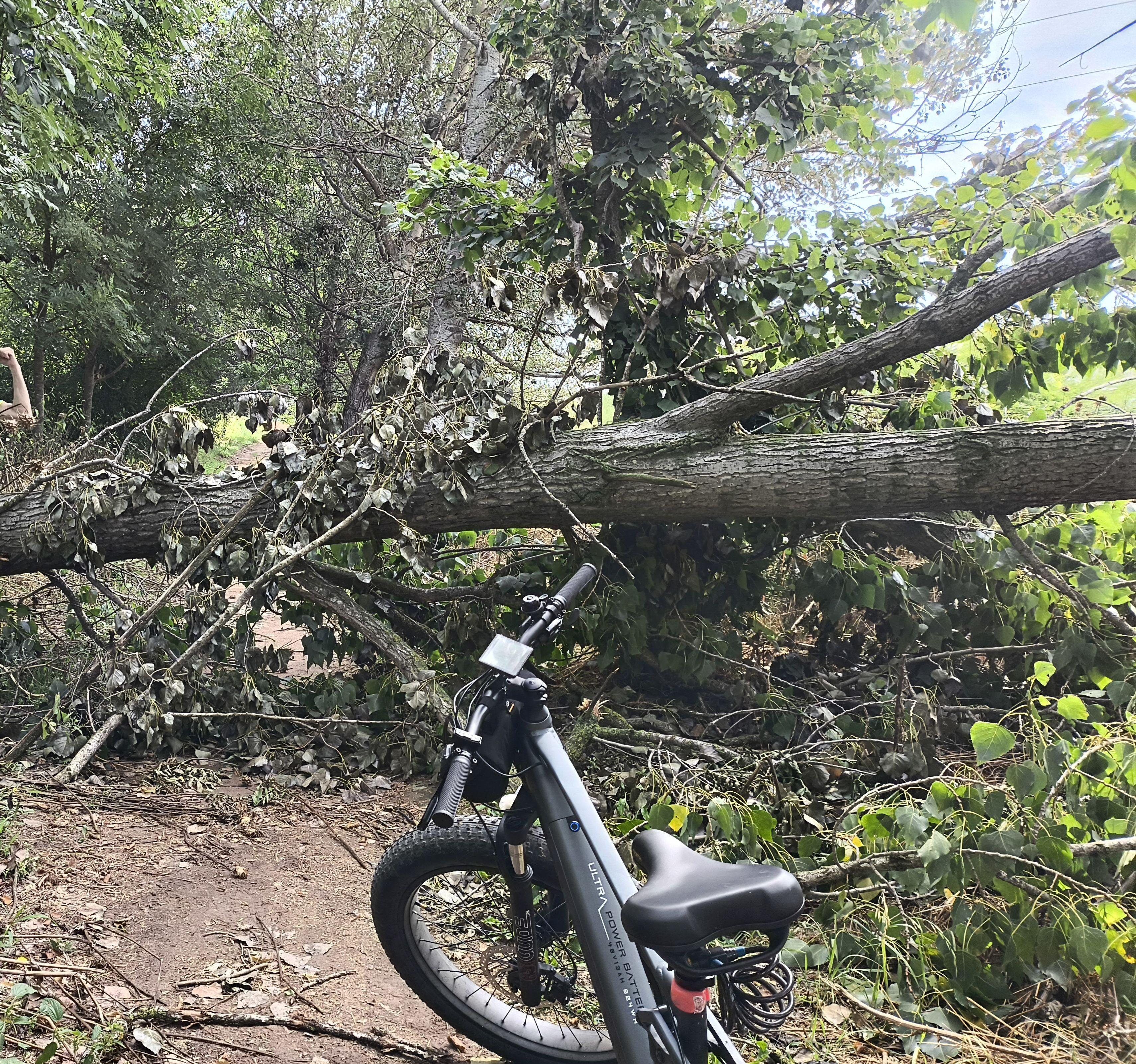 En el tram d'anella verda del pont del Bruguer cap a Roda de Ter a nivell polígon. Hi ha un arbre caigut impedint el pas.