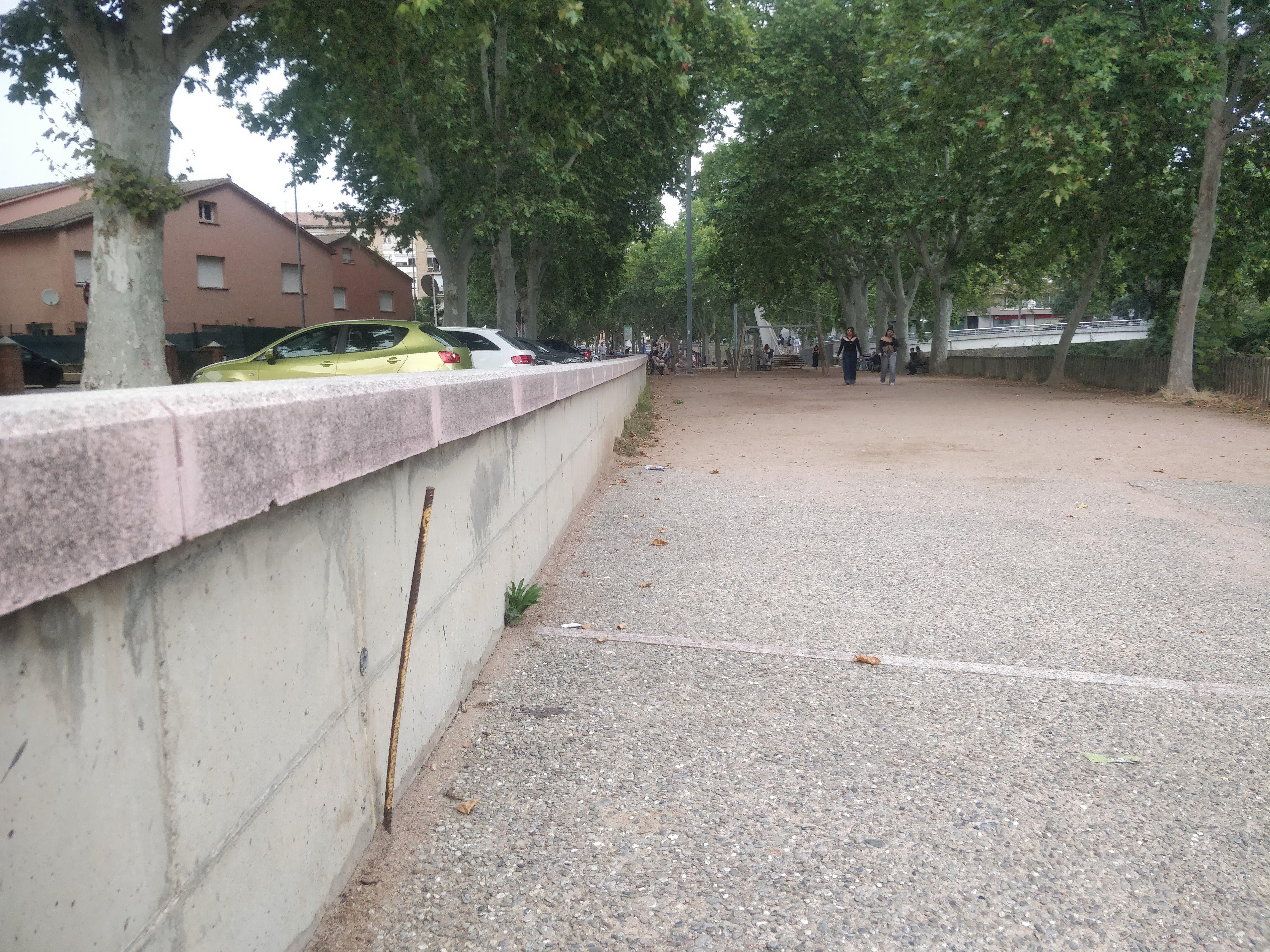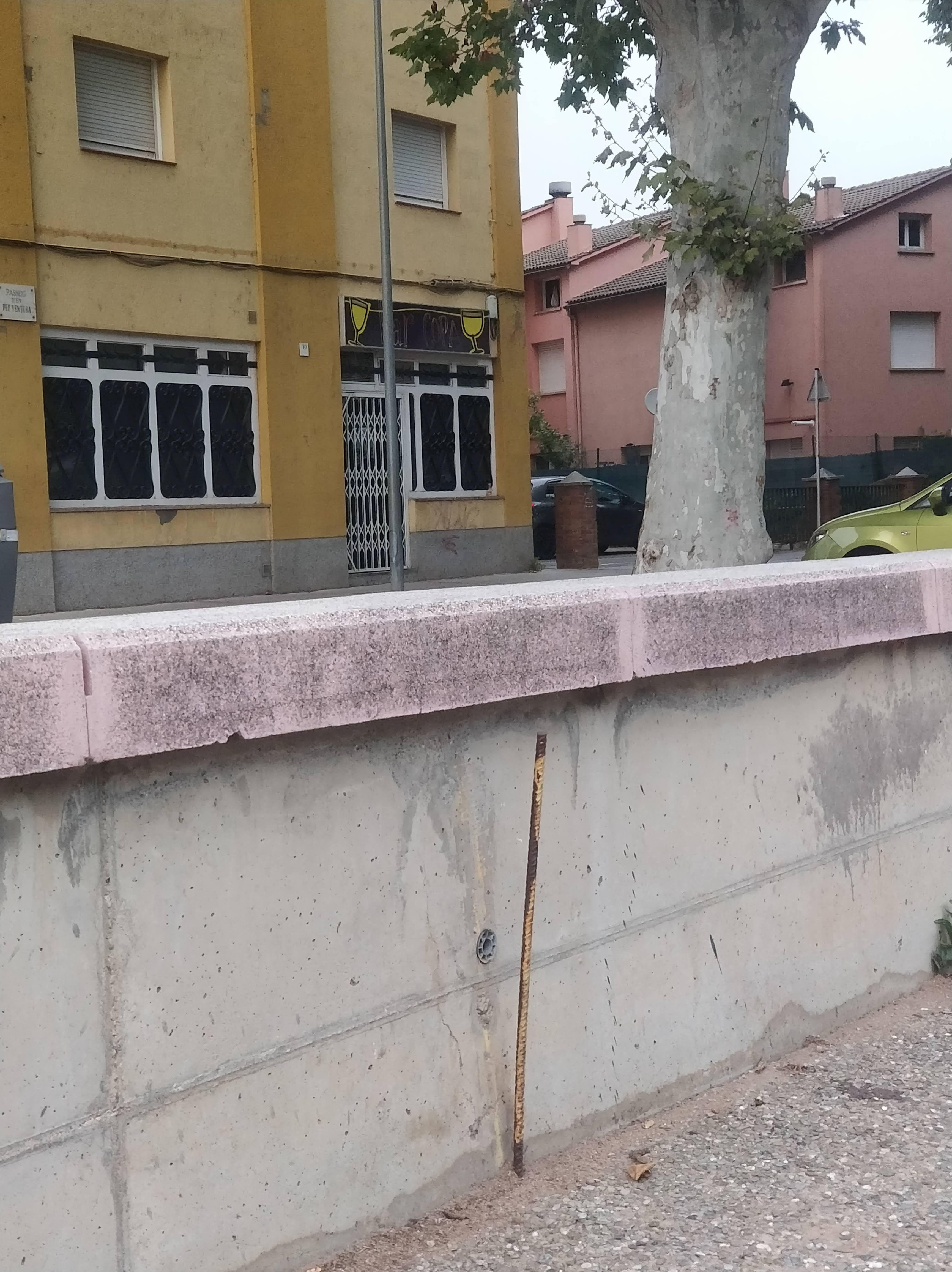 Prego que passin un moment a tallar la varilla d'acer que hi ha al mur que separa el parc del passeig Pep ventura a l'alçada del bar Copa. Gràcies.