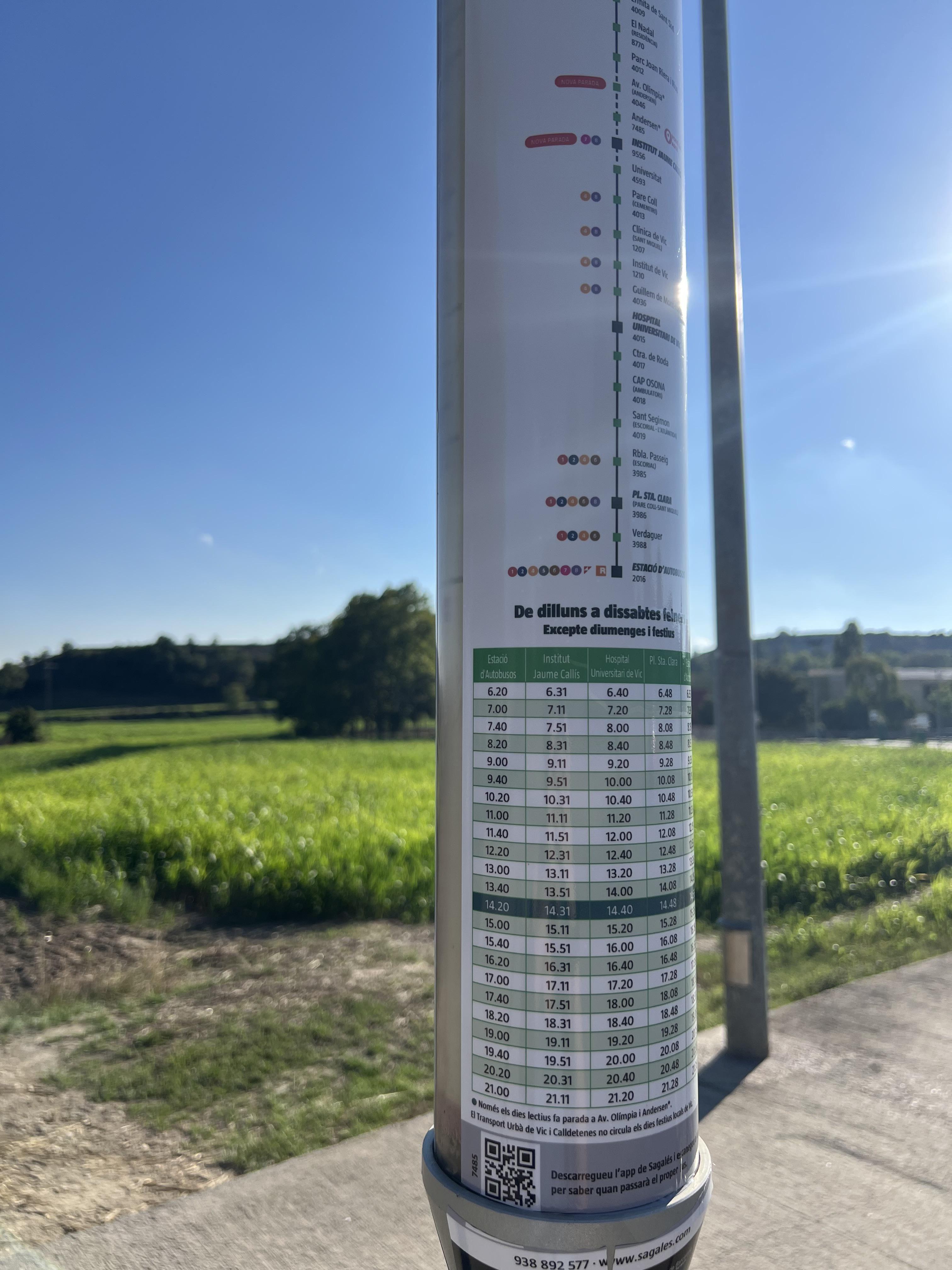 Expressem la nostra profunda insatisfacció amb el servei de transport urbà que ofereix la línia 8, especialment pel que fa a l’horari de pas després de l’escola Andersen. Avui, dilluns 15 de setembre, dia lectiu ordinari, hem estat esperant l’autobús de la línia 8 a la parada de l’escola Andersen a partir de les 17:05, amb l’expectativa que passés a les 17:20 segons l’horari oficial. Malauradament, després de més d’una hora d’espera, fins a les 18:00, no ha passat. El curs passat ja vam patir problemes similars amb la línia 3, especialment amb els autobusos que, segons l’horari, havien de passar a les 17:11 i 17:51. Tot i que aquella línia passava amb una certa regularitat (cada 40/50 minuts), també patia incompliments horaris constants. Ens sembla inacceptable que un servei públic tan essencial com el transport urbà, especialment en horaris escolars i amb menors d’edat, no sigui fiable ni previsible. Deixant literalment tirades famílies amb infants a les afores de la ciutat.