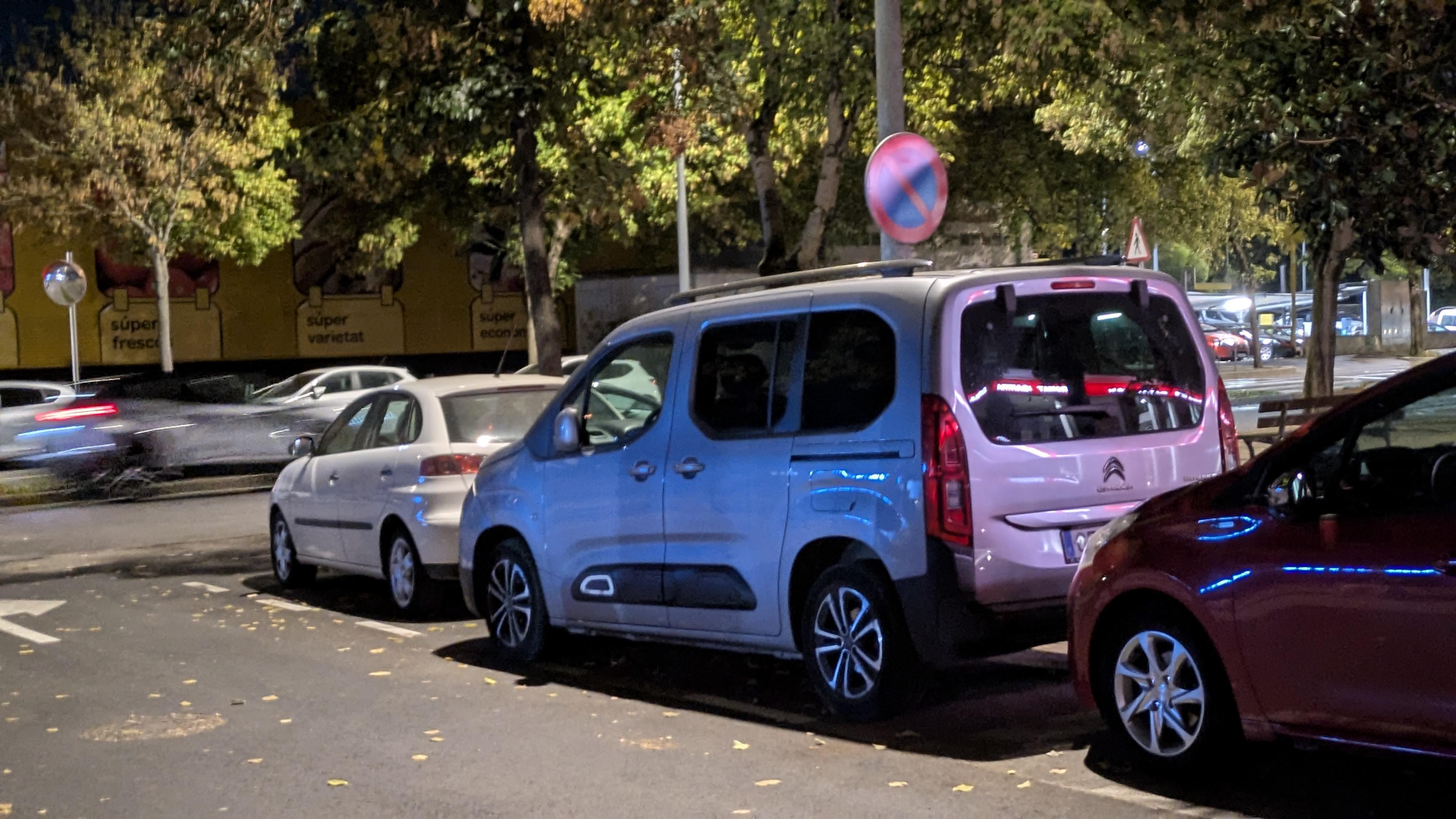 En el repintat que s'ha fet al carrer can Pau Raba, s'han equivocat i han pintat un tram d'aparcament que no pertoca. Ara els vianants tenen molt poc espai i han de passar a tocar del carril bici.