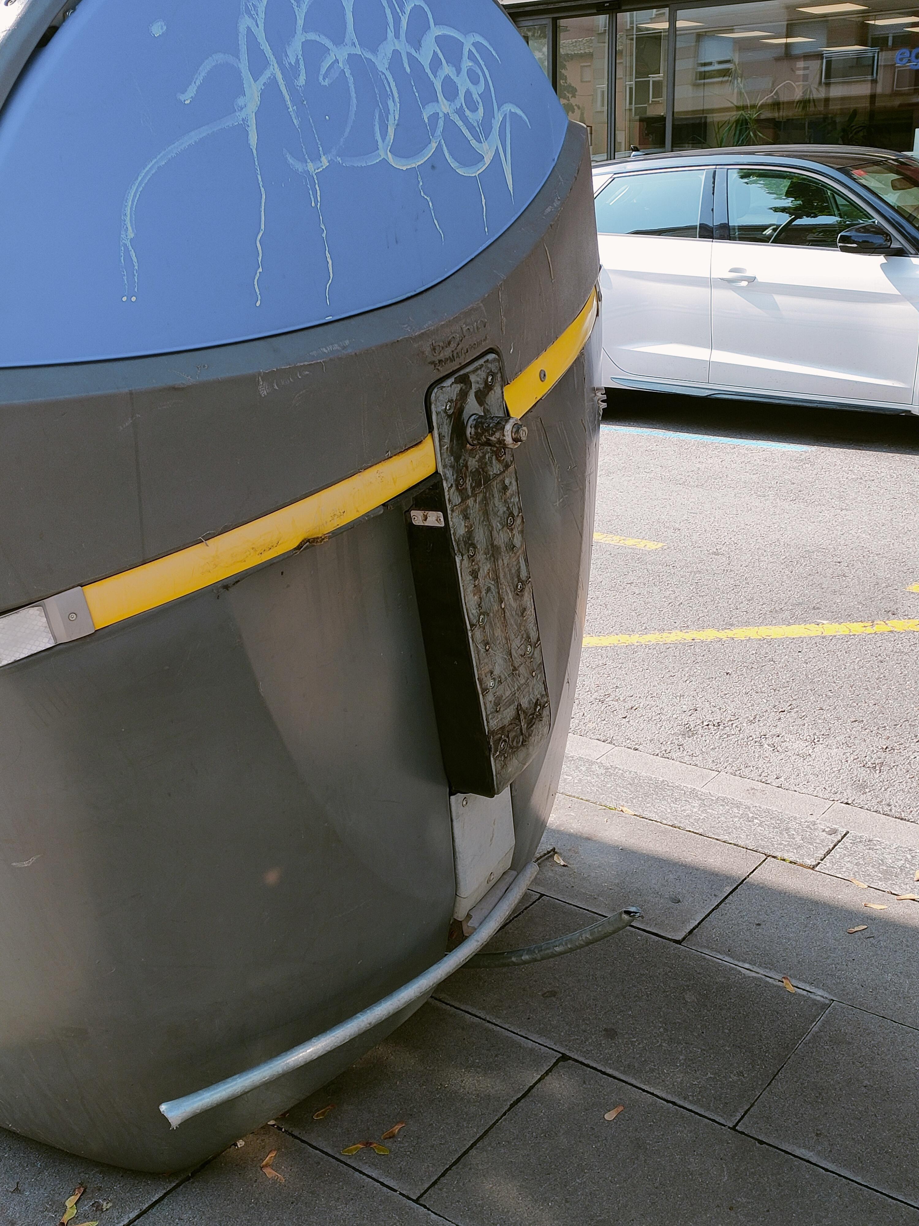 El contenidor de paper que hi ha a la Rambla Tarradellas (costat parada bus) té el pedal trencat i surt un ferro que és perillós. Els contenidors exteriors que tenim ara ocupen més lloc, ja que els soterrats que no funcionen només estan de mostra. Caldria reorganitzar la zona.
