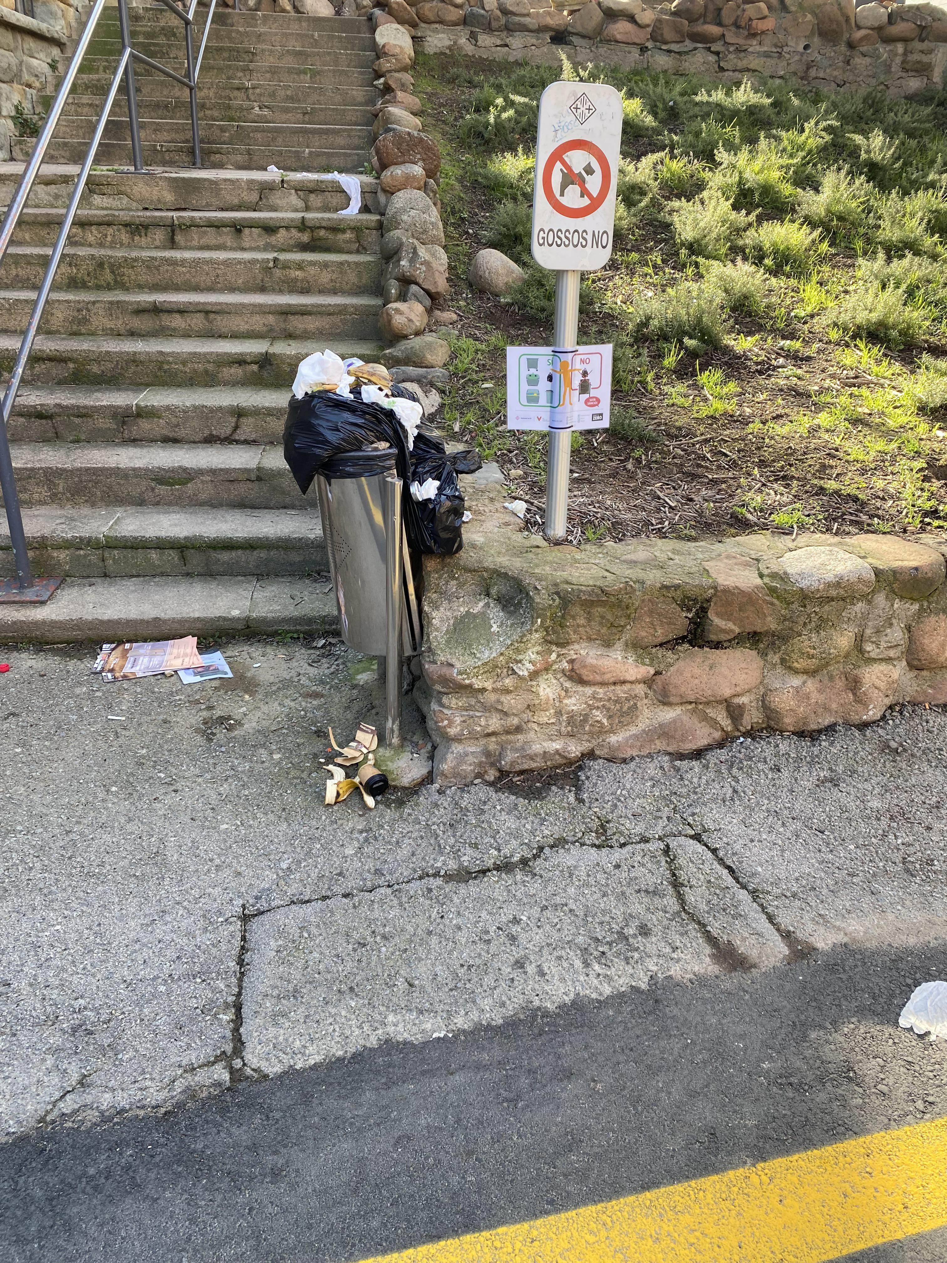Al camí Escorial cantonada carrer Cabrera, hi ha una paperera que molt sovint està plena i amb deixalles al voltant.
