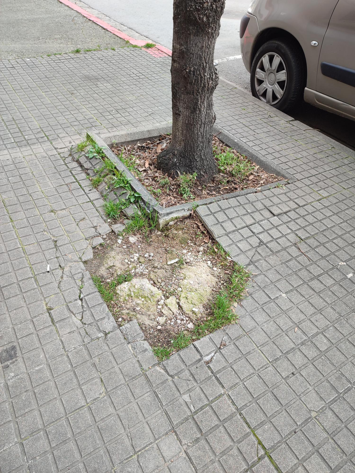 Adjunto foto de l'estat de la vorera davant del núm. 3 del carrer d'en Perot Rocaguinarda. Gràcies.