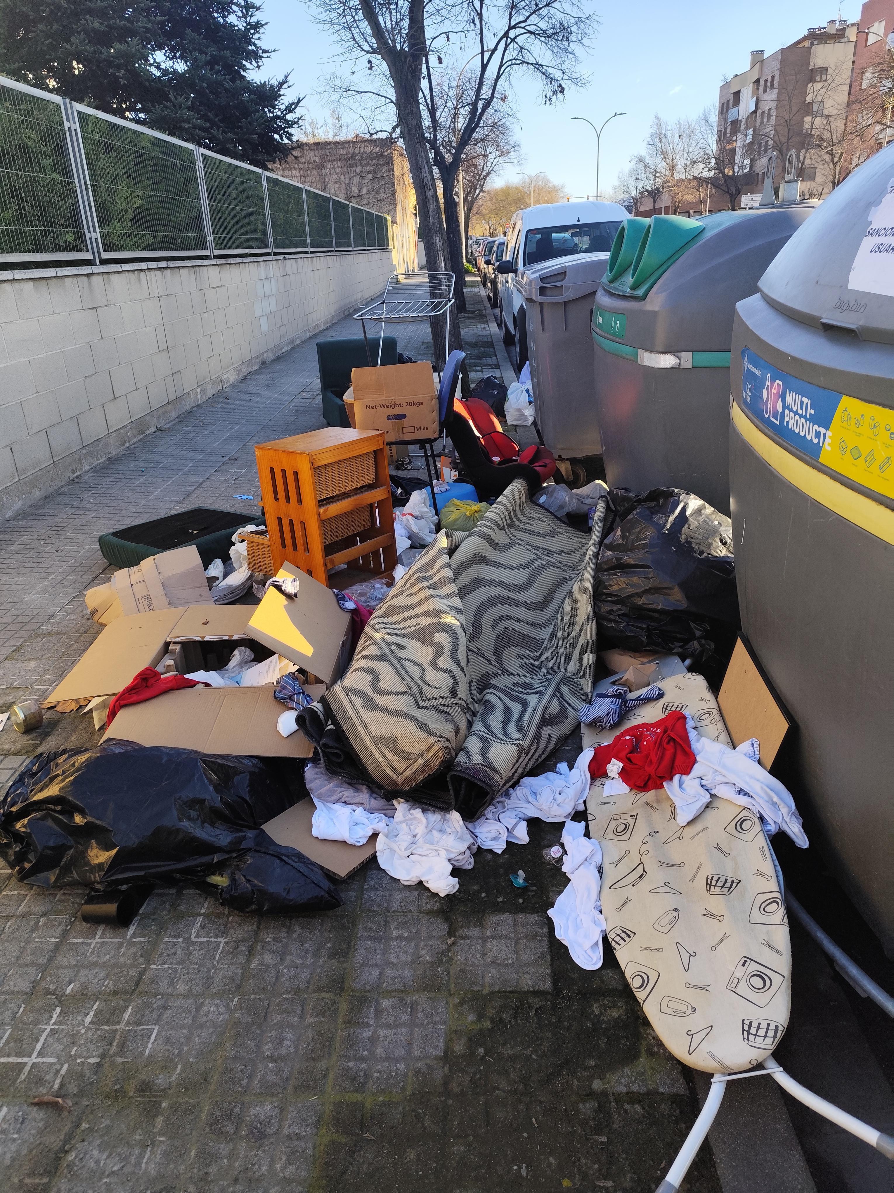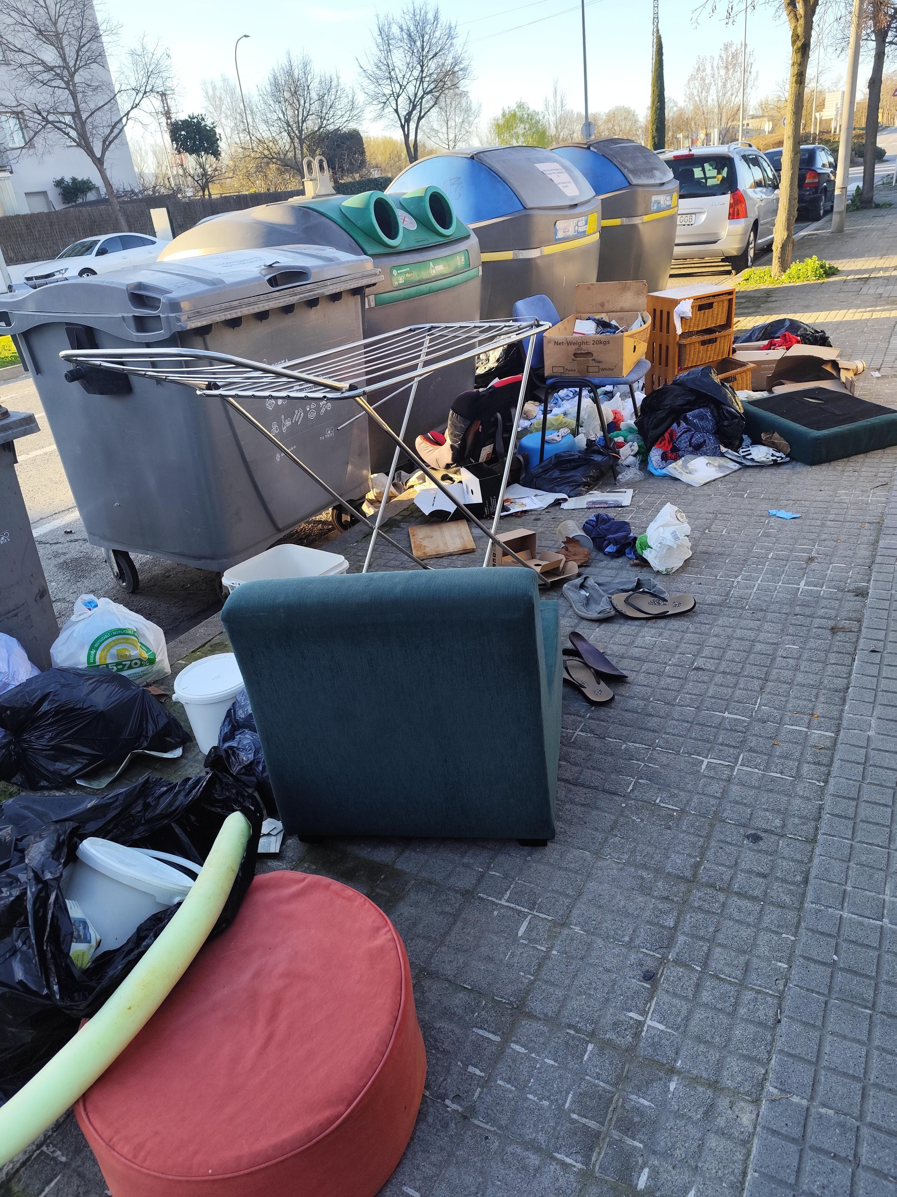 Deixalles de tot tipus a la vorera i just davant dels contenidors. És constant. Incivisme total.