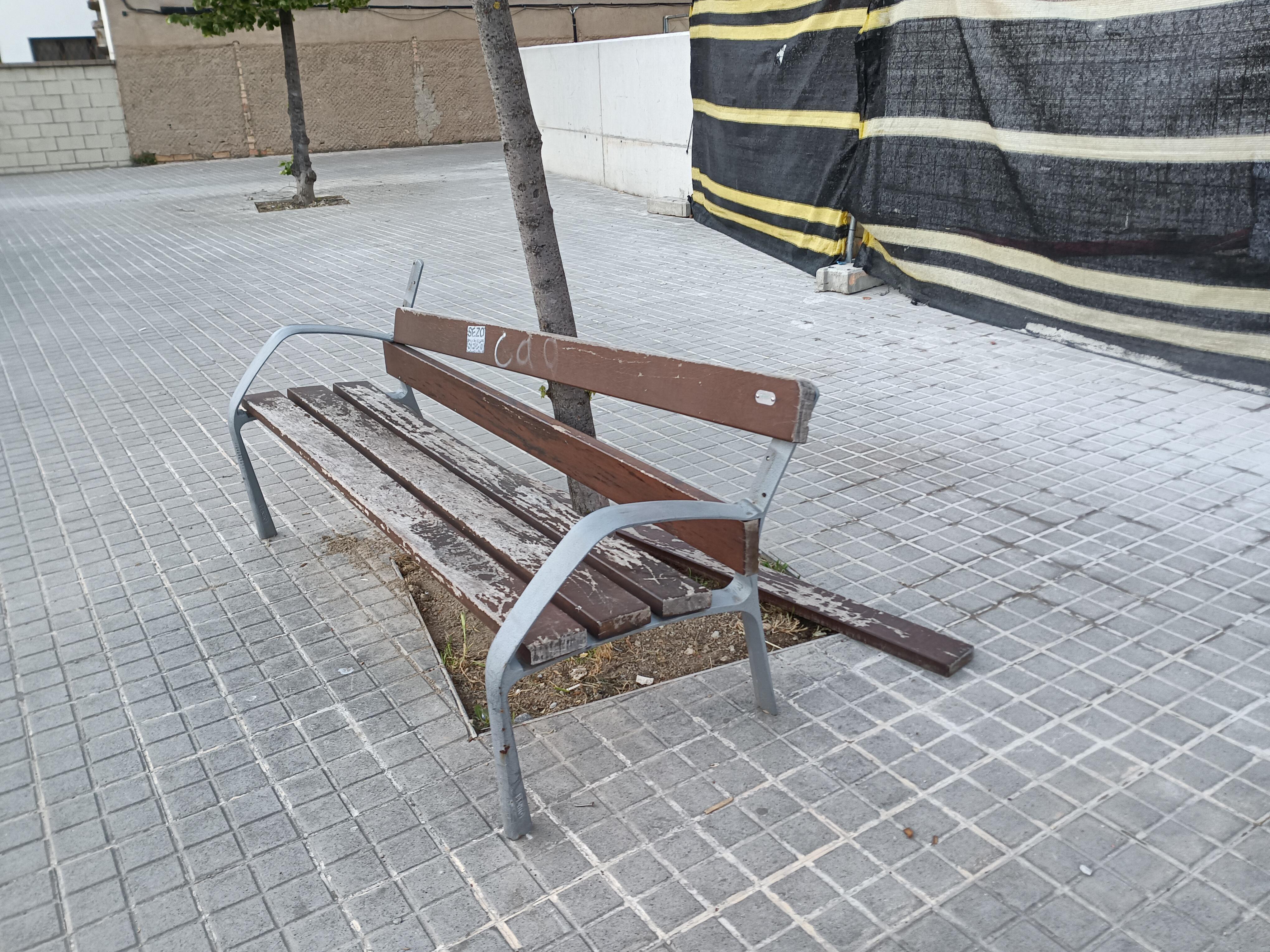 Al C/St. Jaume, davant el Tapís, a l'altura de la parada de bus, hi ha un banc trencat, s'aguanta a dures penes. Hi ha perill que s'assegui algú sense adonar-se'n. Mentre hi poseu remei o feu canvi, seria bo posar un cartell i prohibir utilitzar-lo per no haver de lamentar res. Sovint en aquest carrer s'asseu gent gran a descansar o gent jove a les nits.