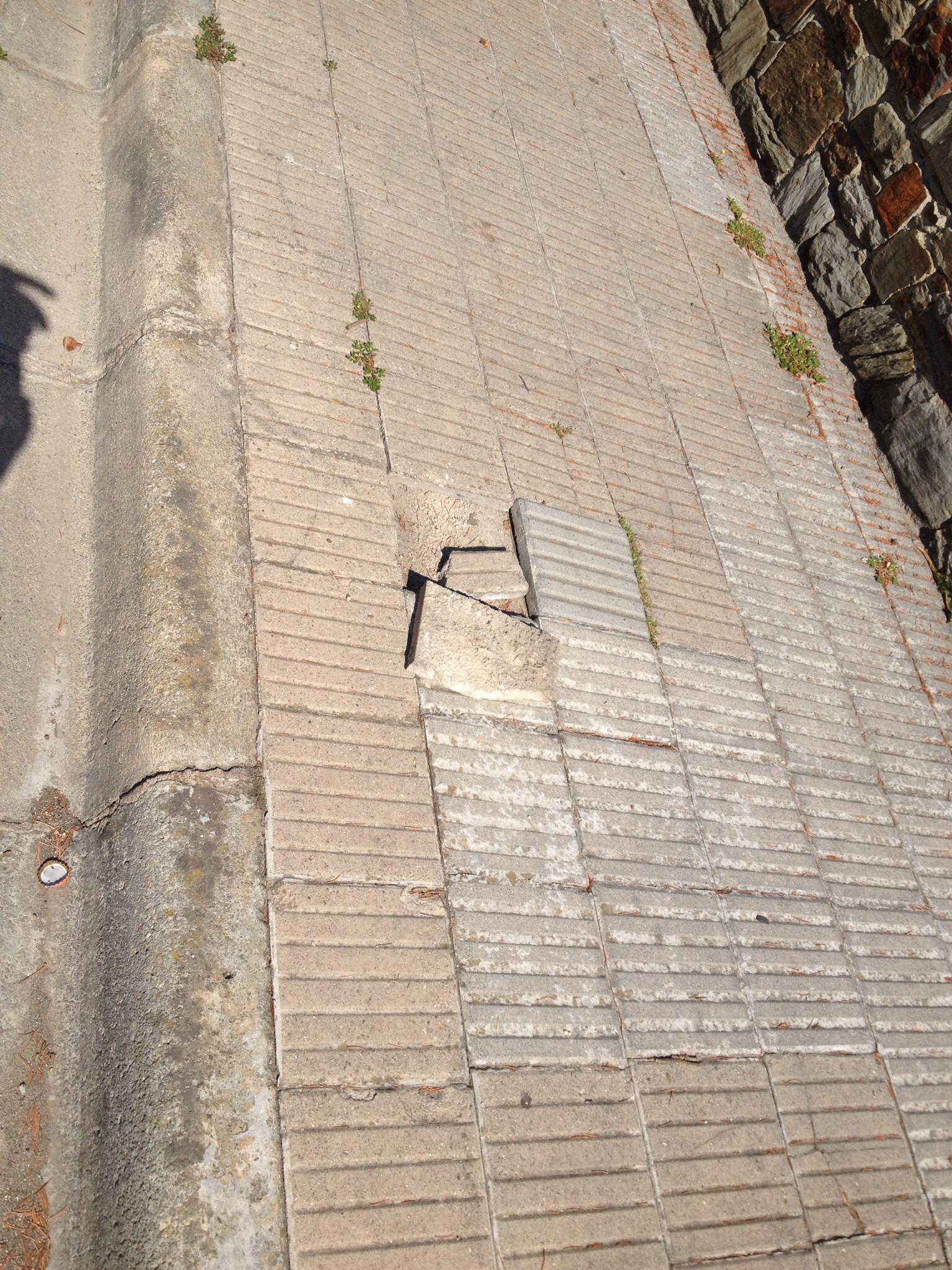 Lamentable estat del carrer Llucià Costa, sabem d'almenys una caiguda d'una persona gran amb resultat de fractura de braç pel mal estat del panot tal com es veu a la foto, a part de les herbes que hi creixen encara que això és només estètic.