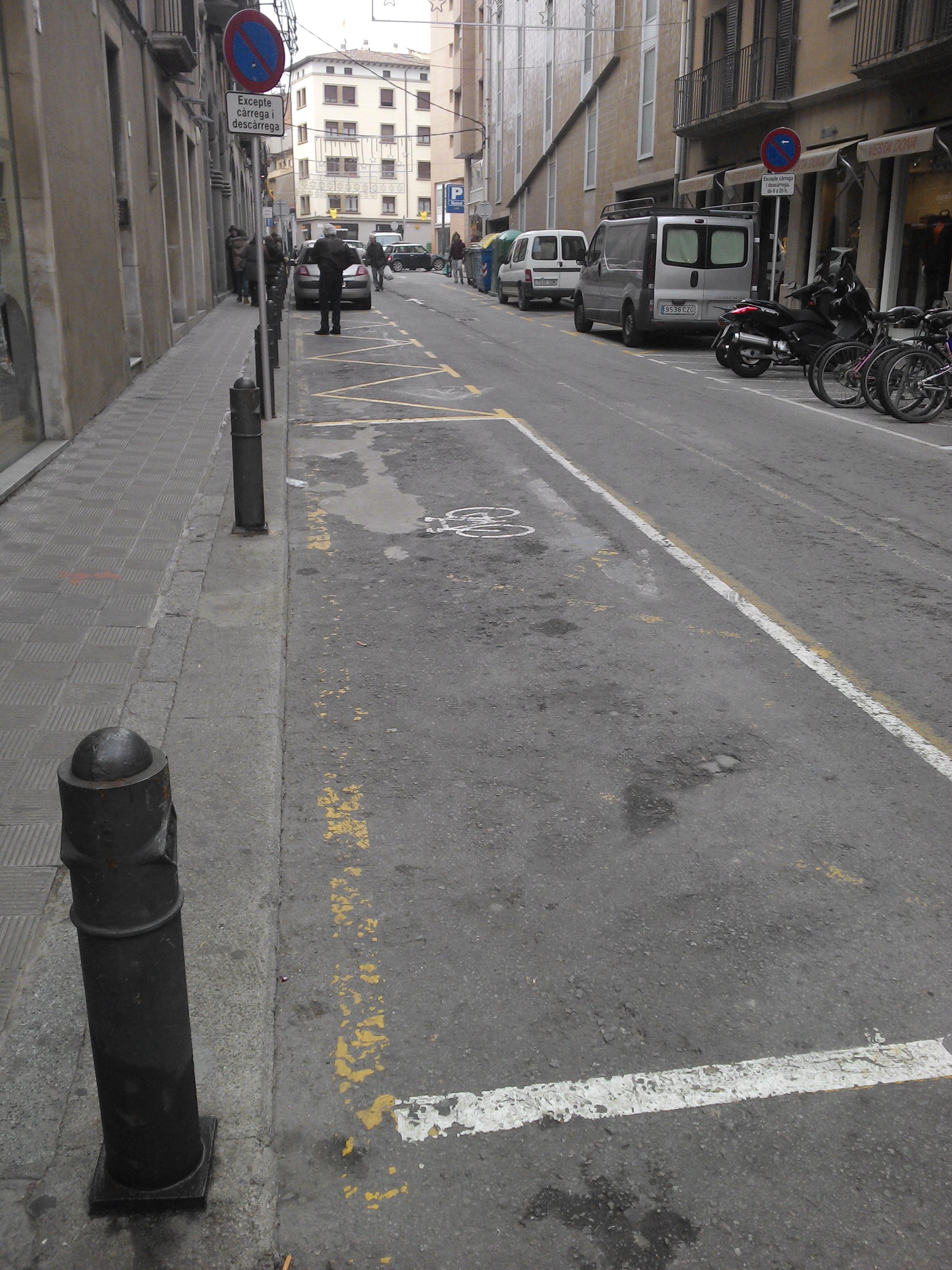 c / del Pla de Balenyà, a la cantonada amb el carrer de Manlleu, hi ha un espai marcat a terra com a reservat per a un aparcament de bicicletes sense l'aparcament en sí (si bé és cert que a l'altra banda de la calçada n'hi ha un).