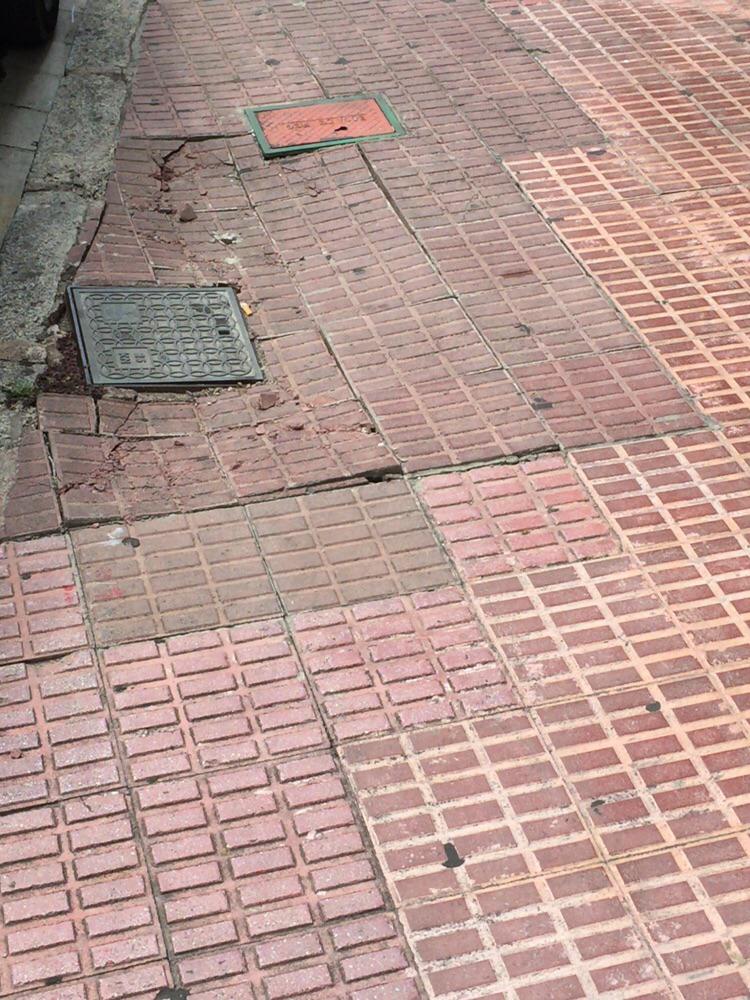 C /Jaume I, un tram de la vorera s'ha enfonsat, és al costat del frankfurt de Sant Miquel.