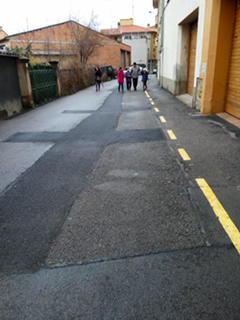 Abans de pintar la línia groga, els cotxes aparcaven a tocar les façanes de les cases i sovint impedint l'entrada i sortida dels veïns. I en gran mesura és per això que es va pintar la ratlla. Els vianants no tenien altra solució que anar pel mig. En hores d'entrada i sortida de l'escola bressol és molta la gent que va a peu i per això està senyalitzat per alerta de vianants. En zones d'afluència tots hem d'incrementar l'atenció.