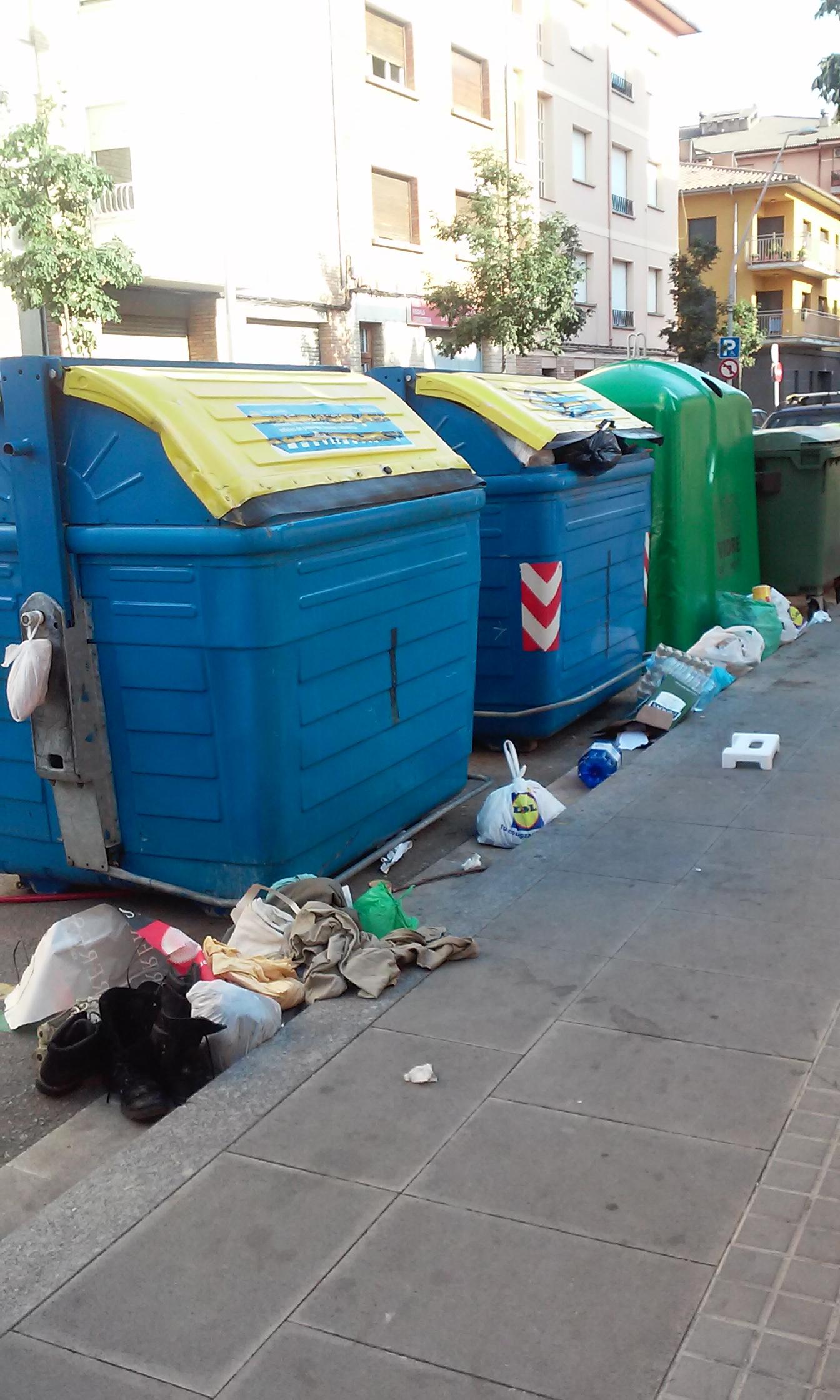 a l barri del Remei ens trobem cada dia amb aquesta imatge, no només escombraries fora dels contenidors, voreres brutes, pixarades i excrements d'animals. Molts veïns estem farts d'aquesta situació.