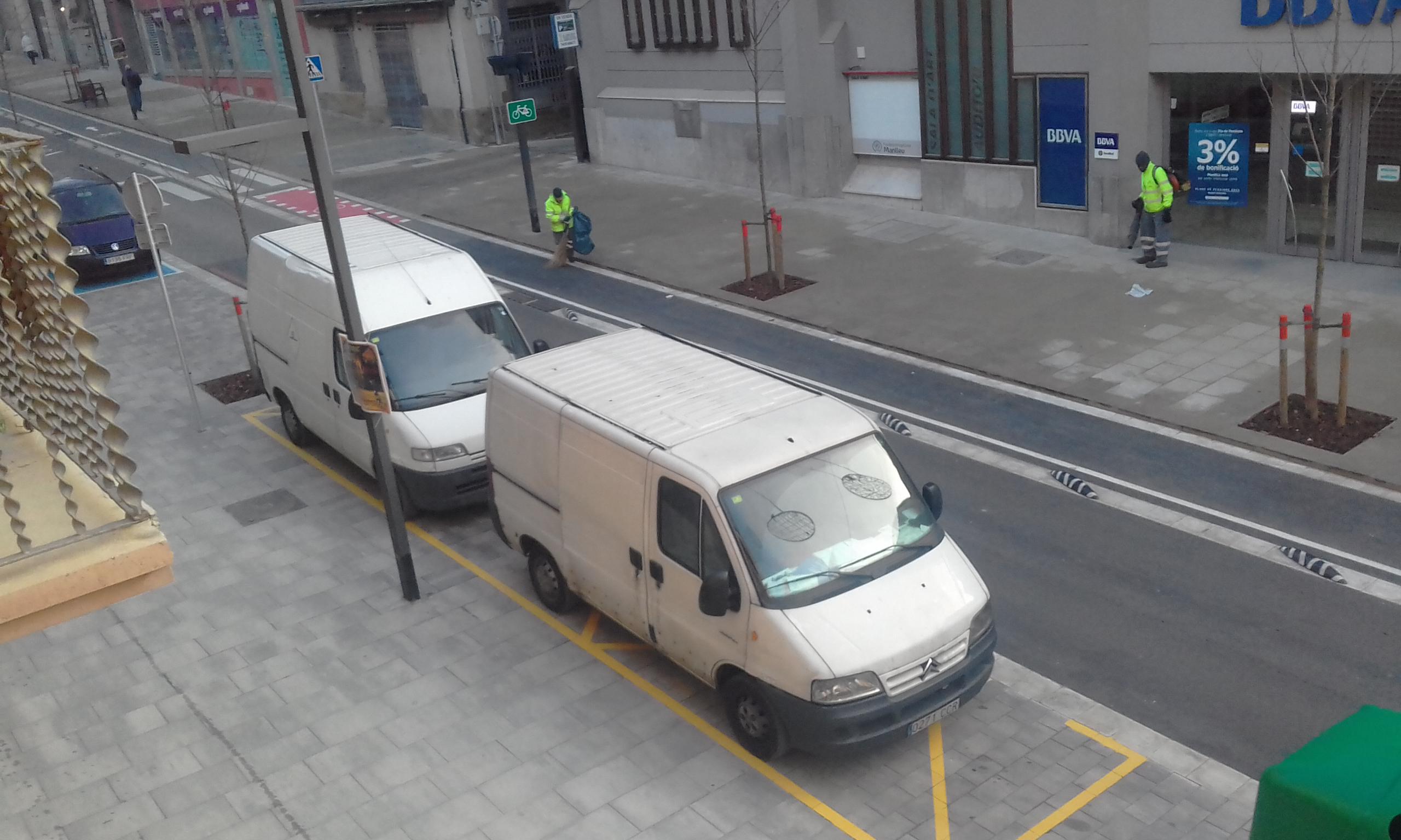 Com hem de fer els veïns de la Rambla de l'Hospital per encotxar/ desencotxar persones o carregar/descarregar paquets si no hi ha lloc per aturar-nos ni un minut? Les poques zones de càrrega i descàrrega estan sempre ocupades. Vegeu foto que adjunto d'aquest dissabte passat: dues furgonetes s'hi van estar tot el matí, des de les 9 fins a les 2 del migdia. Com ho hem de fer doncs? Aparquem dos minuts al carril bici o preferiu que ens aturem a la mateixa calçada entorpint tot el tràfic un parell de minuts just el temps de descarregar els paquets i pujar-los a casa?