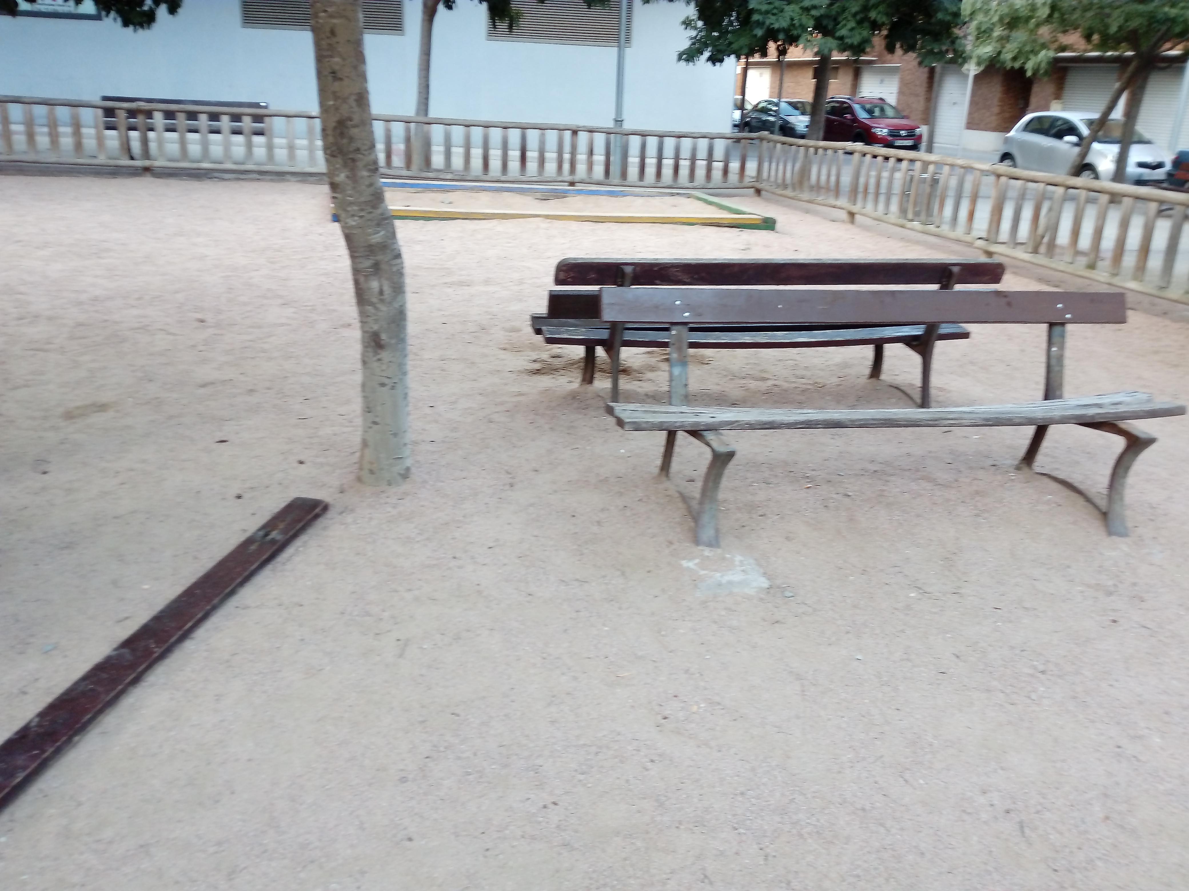 Banc trencat al parc del carrer Bellmunt. Plaça Manel Anglada Bayés .