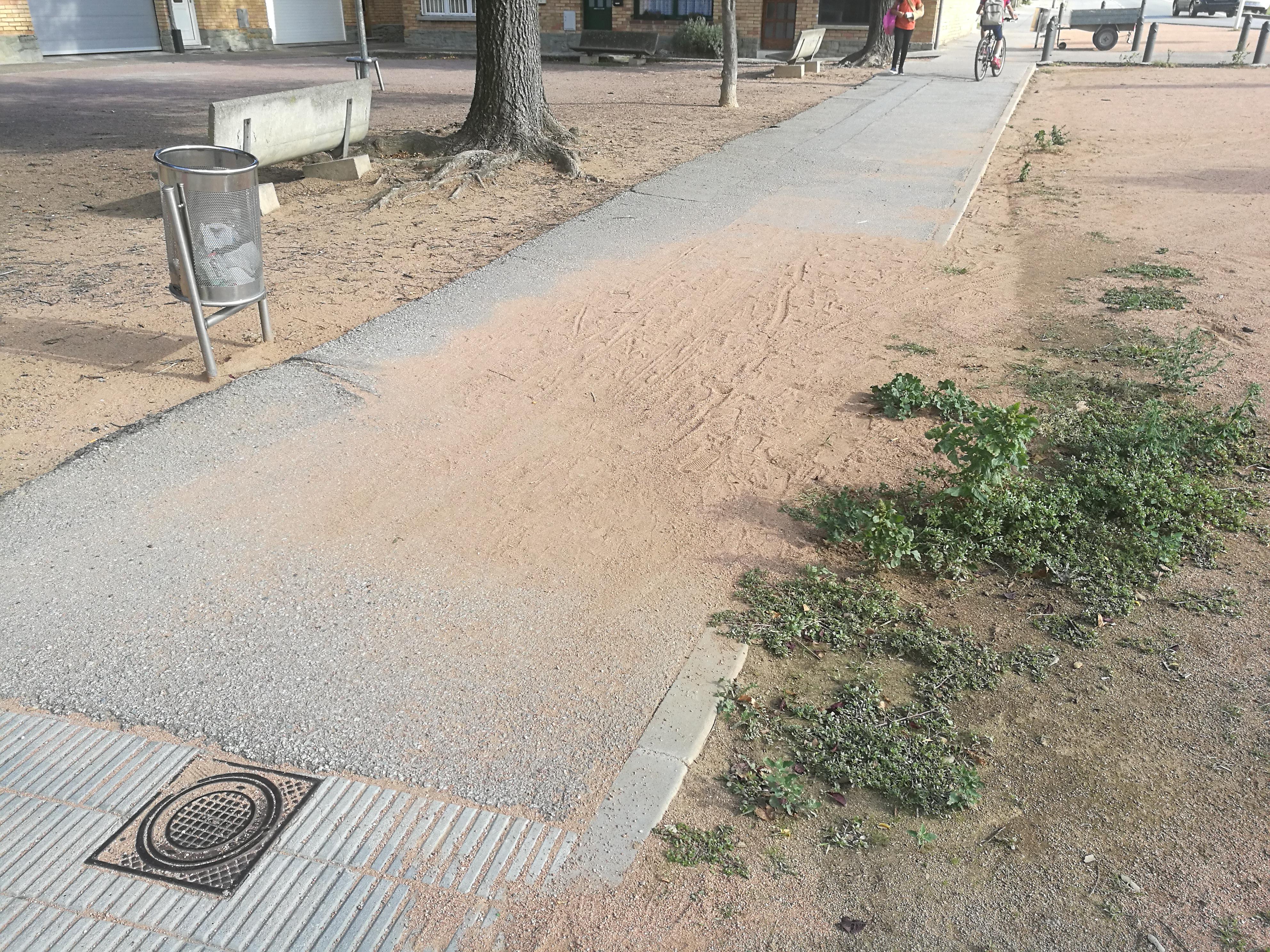 Pas de vianants entre la Plaça Mialet i la rotonda. El nivell de la vorera respecte al terra de sauló està molt ensorrat i en època de pluja l'aigua fa córrer el sauló cap a la vorera i crea bassals prou importants per impedir el trànsit de vianants. Aquest problema ja fa anys que es reivindica des de l'Associació de veïns del barri de Santa Anna.