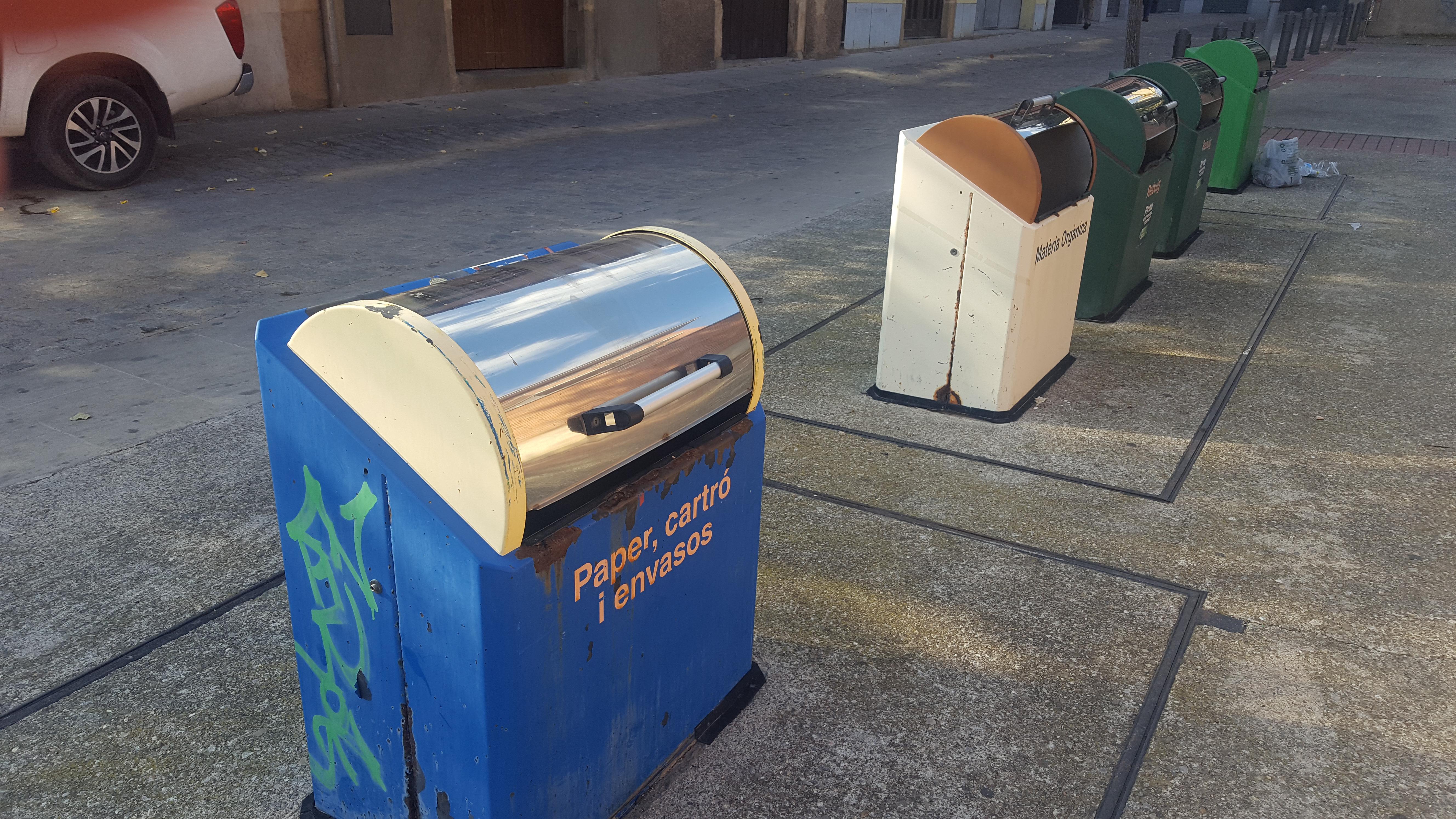La bústia del contenidor blau del final carrer sant Pere, no funciona bé. Fa mesos no és fàcil la seva obertura.