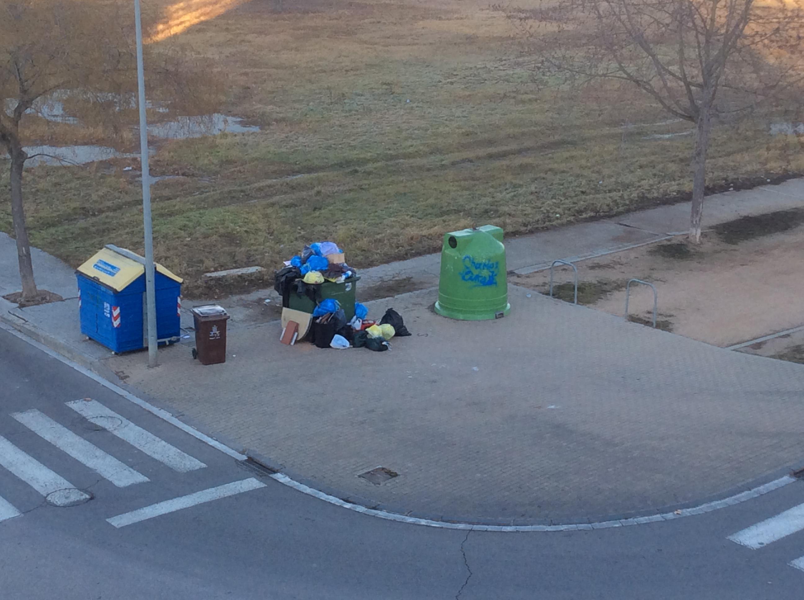 Ja fa gairebé una setmana que el camió de les escombraries no passa a buidar el contenidor de rebuig que està situat al c/Mercè Font i Codina (zona de Sant Llàtzer), al costat de la rotonda gran abans d'arribar a Calldetenes. Agrairíem que passessin perquè cada cop hi ha més bosses a terra i si fa vent, se les emporta, escampant deixalles per tot arreu.