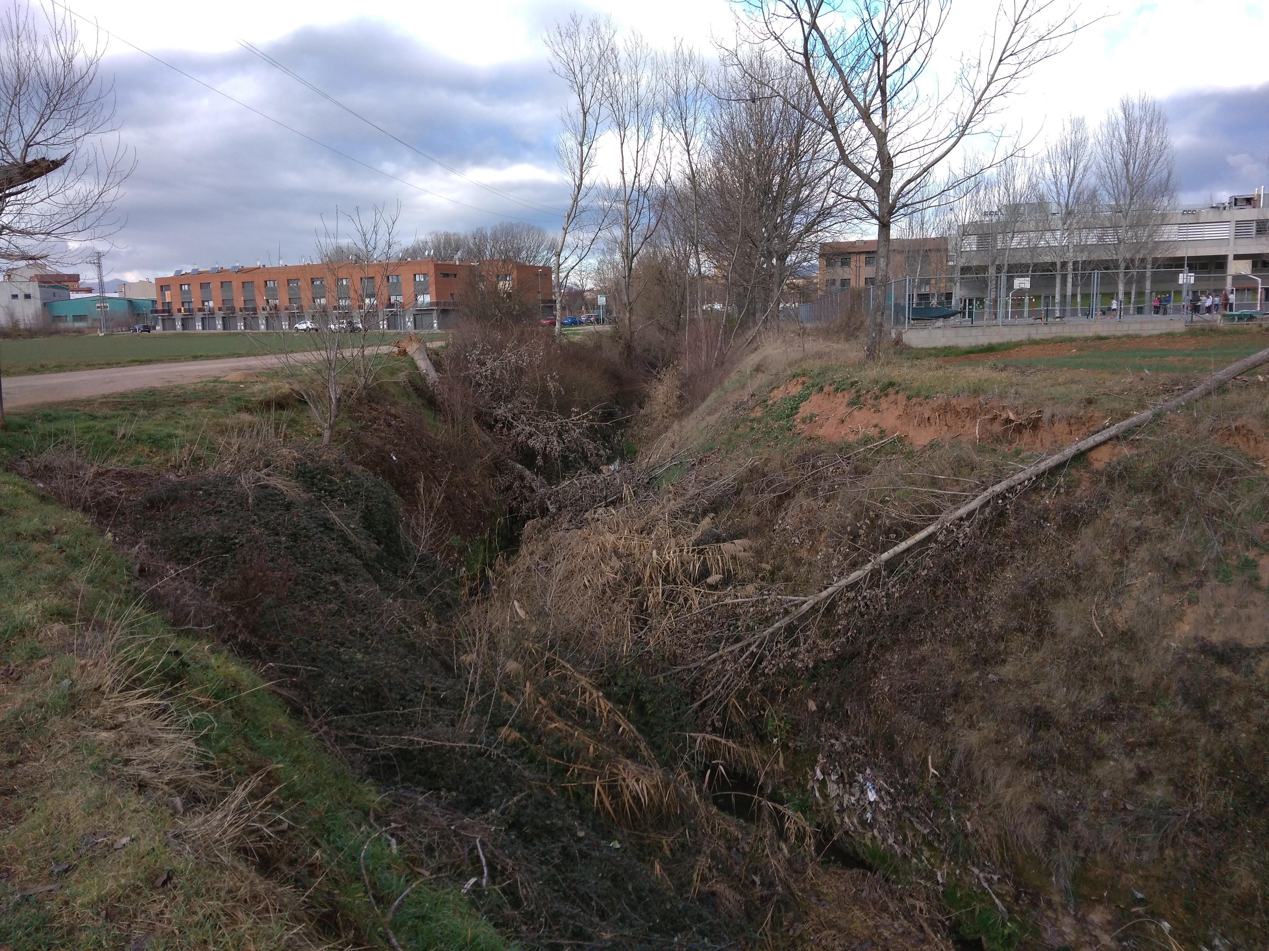 Darrere de l'escola de la Sínia, el Torrent de Sant Jaume, hi ha uns arbres a dintre el torrent, que crec que no hi haurien d'estar.