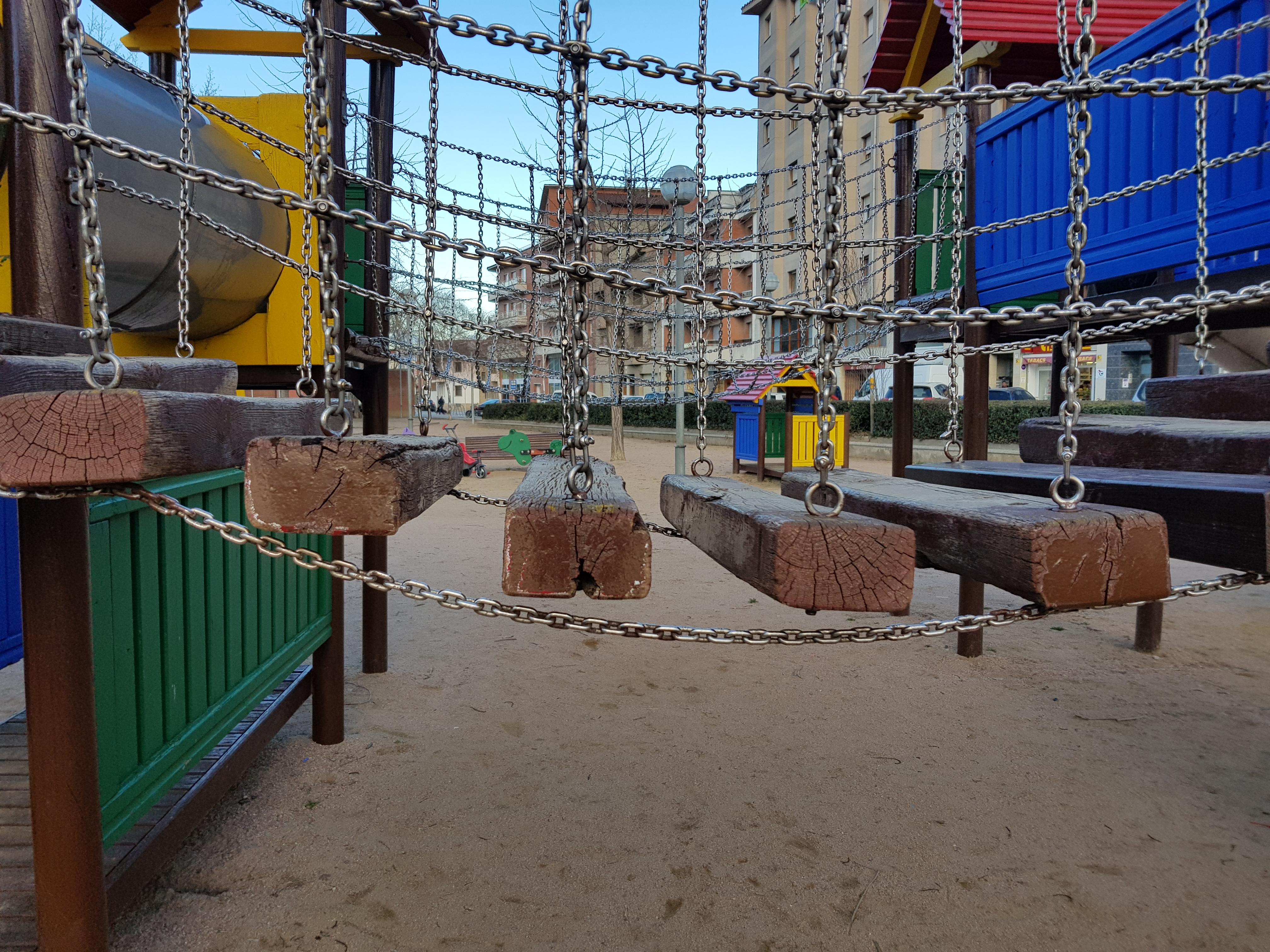 Aquesta tarda era al parc de santa Anna amb el meu fill i uns amics, i el meu fill passava per la passarel·la de taulons de fusta i tot d'una hem vist com queia a terra, ja que els taulons no estan lligats entre ells, s'ha fet mal al front i al llavi. Em sembla desastrós el nivell de deixadesa dels parcs infantils de la ciutat de Vic. Adjunto foto de l'estat de la passarel·la de fusta. La seguretat dels infants no té preu. Exigeixo una solució urgent... Estan en perill les vides de nens.