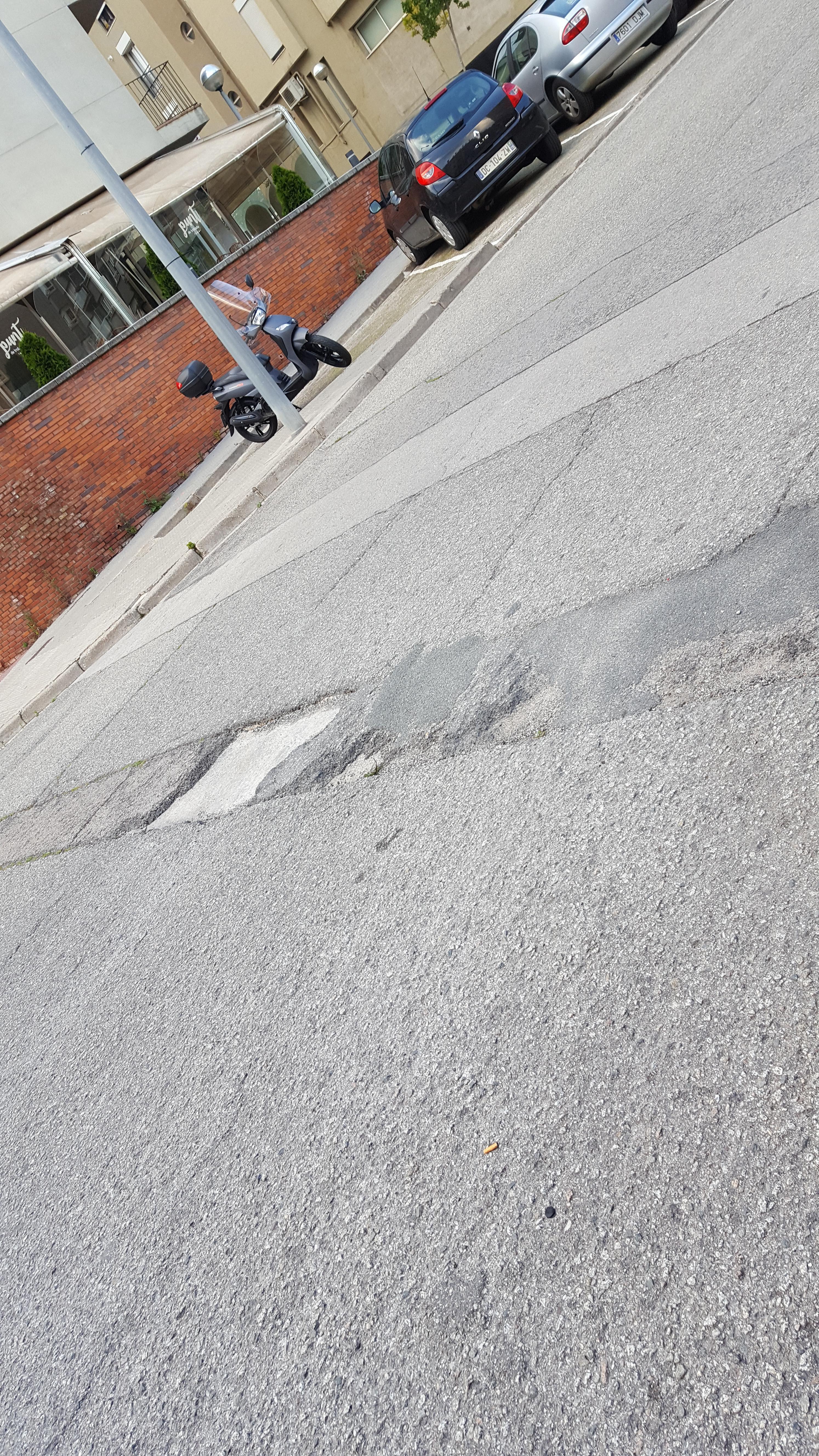 Amb personal de l'Àrea de Serveis s'han tapat amb aglomerat en fred els forats més profunds. En aquest carrer està previst un refermat aquesta propera tardor.