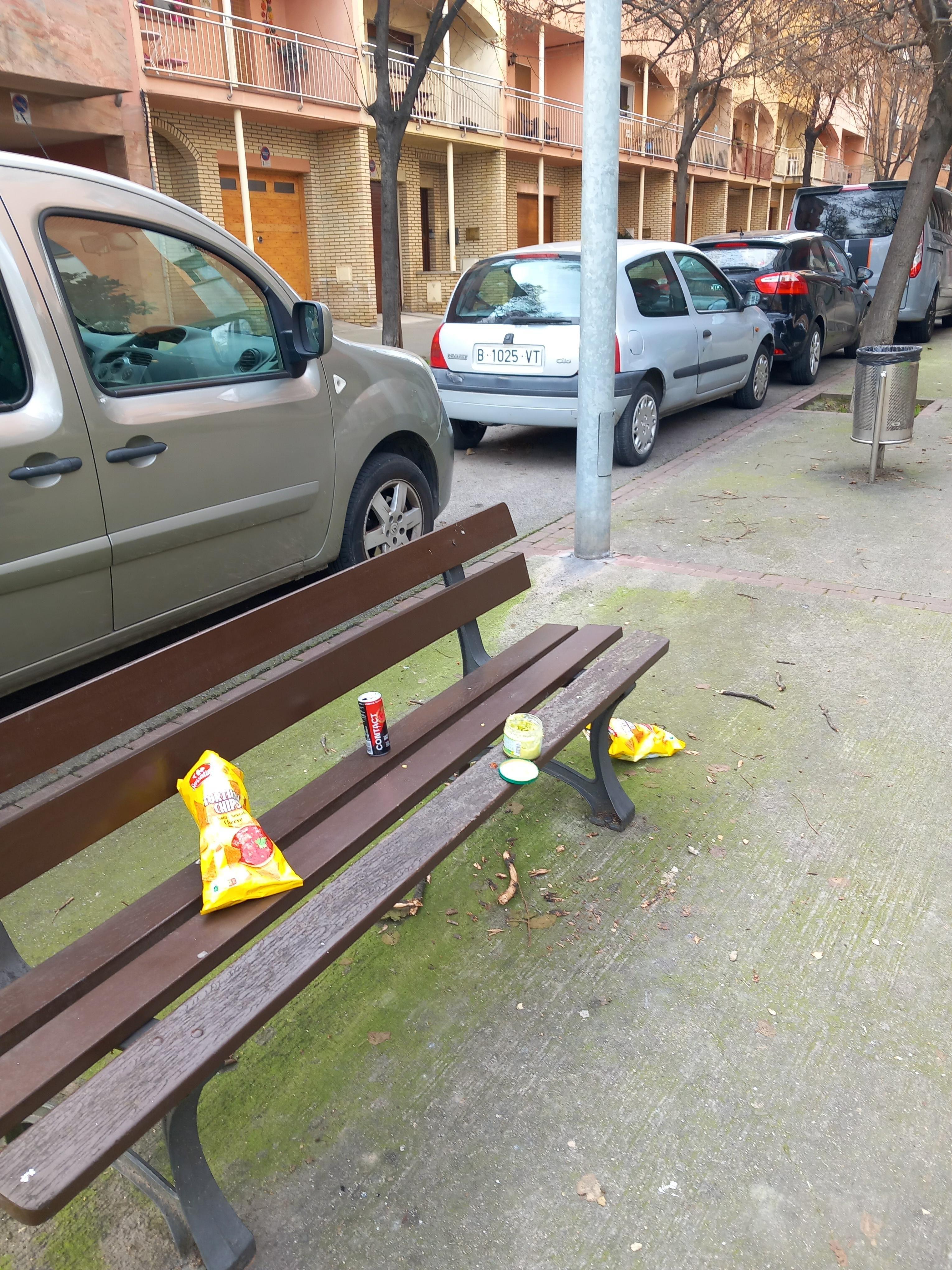 | 20043 | CAPUTXINS | 2026-01-12 | Carrer Mossèn Manel Serinarell amb carrer Torelló. Aquests bancs serveixen de papereres tot sovint. Alguns esmorzen o berenen aquí i hi deixen totes les deixalles. Com podeu veure, hi ha una paperera uns metres més enllà. Malauradament, queda clar que queda molta feina per fer. |