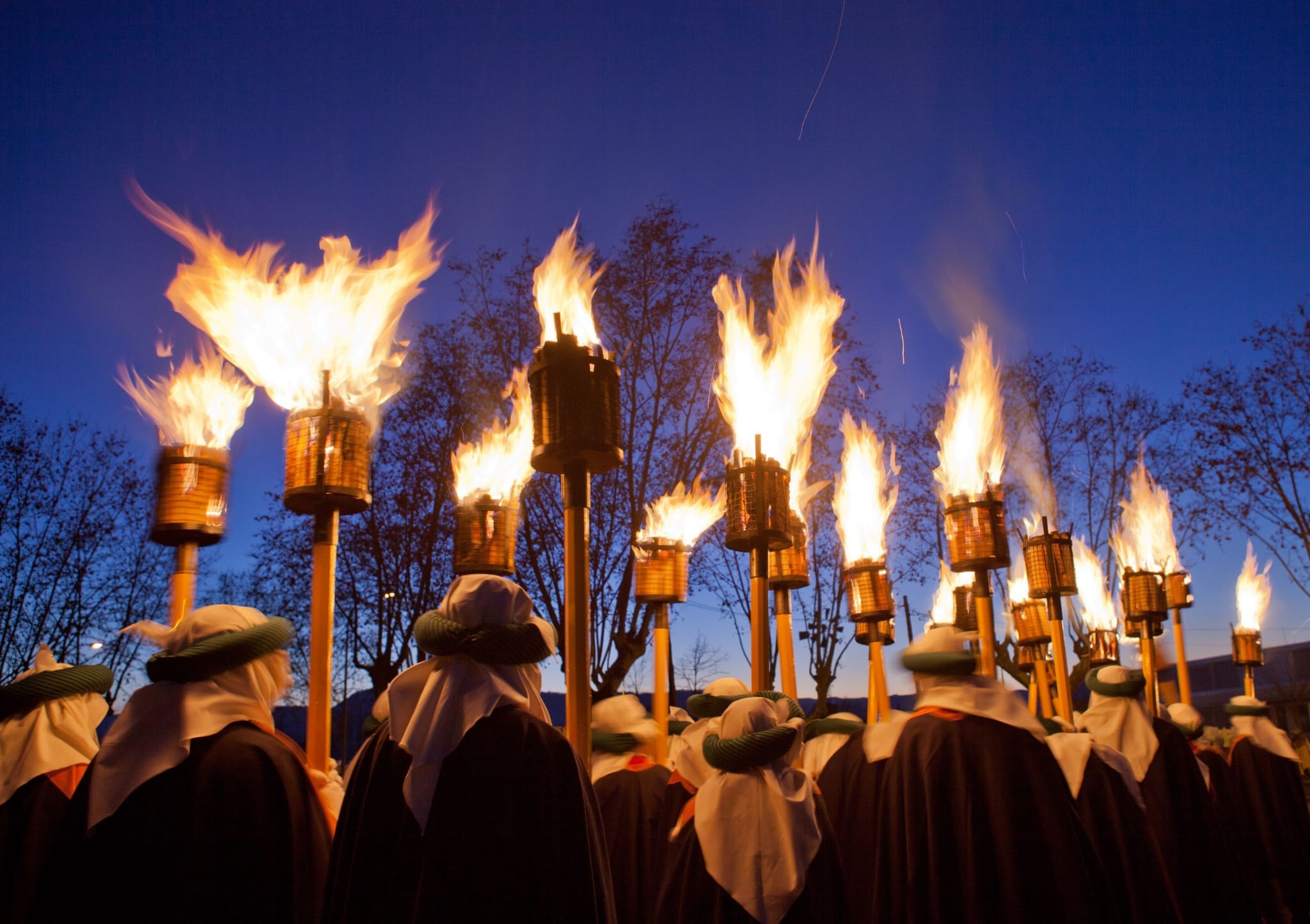 Ses Majestats els Reis Mags d'Orient, Melcior, Gaspar i Baltasar, son guiats pels carrers de la ciutat pel foc de les teies enceses per molts dels integrants de la comitiva, el dels fanalets dels infants assistents i el de les torxes i el braser d'espígol que porten els traginers. És un acte amb molta llum, escalfor i bona olor.
