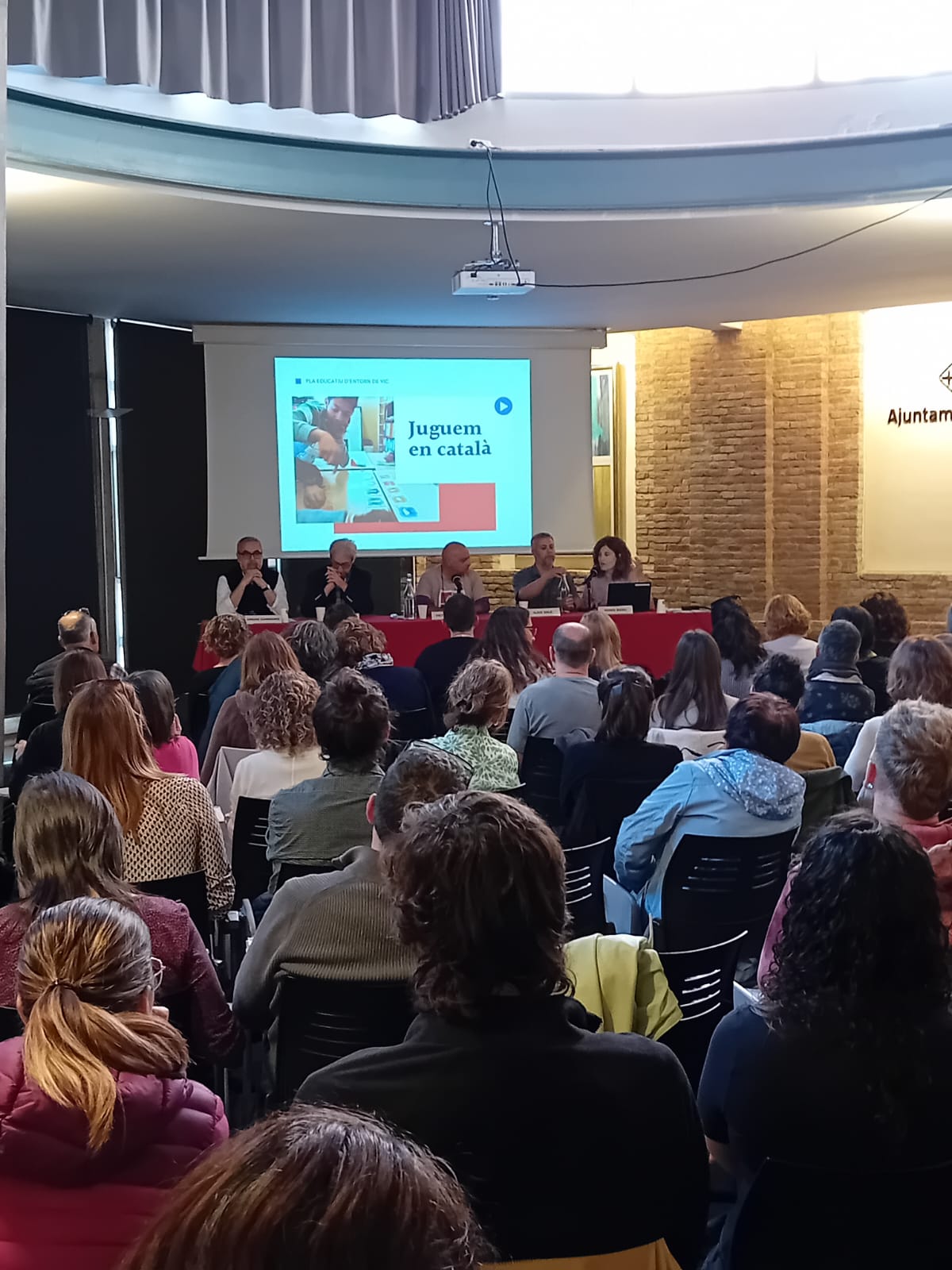 Aquest divendres 10 de maig es va portar a terme la segona edició de la matinal formativa “Ensenyes català?”, dirigida a tots els professionals de la ciutat que ensenyen català tant a persones adultes com a infants de la ciutat de Vic, organitzada per la Comissió Lingüística de Vic. Hi van assistir 60 persones.