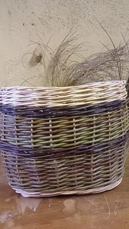 Peça molt utilitzada per a la recol·lecció d'herbes remeieres i per buscar bolets. Farem una motxilla amb la base de cul de queixal i la teixirem amb vímet, al final hi posarem dues nanses.