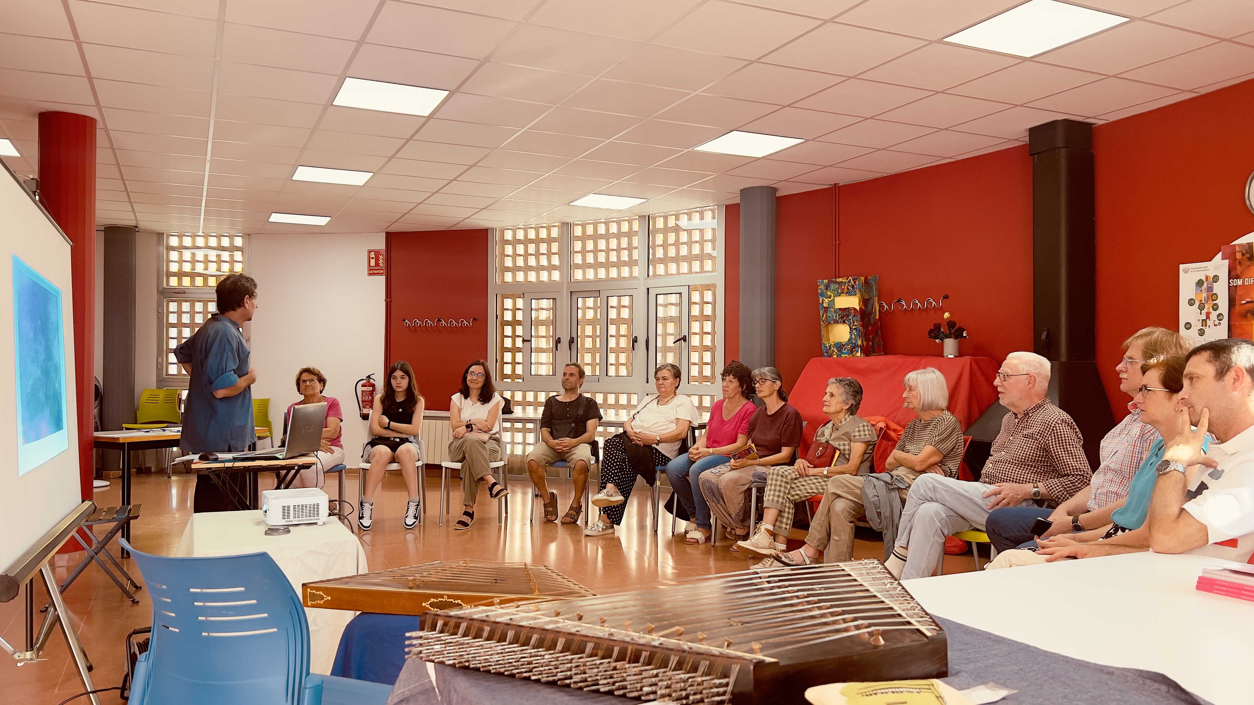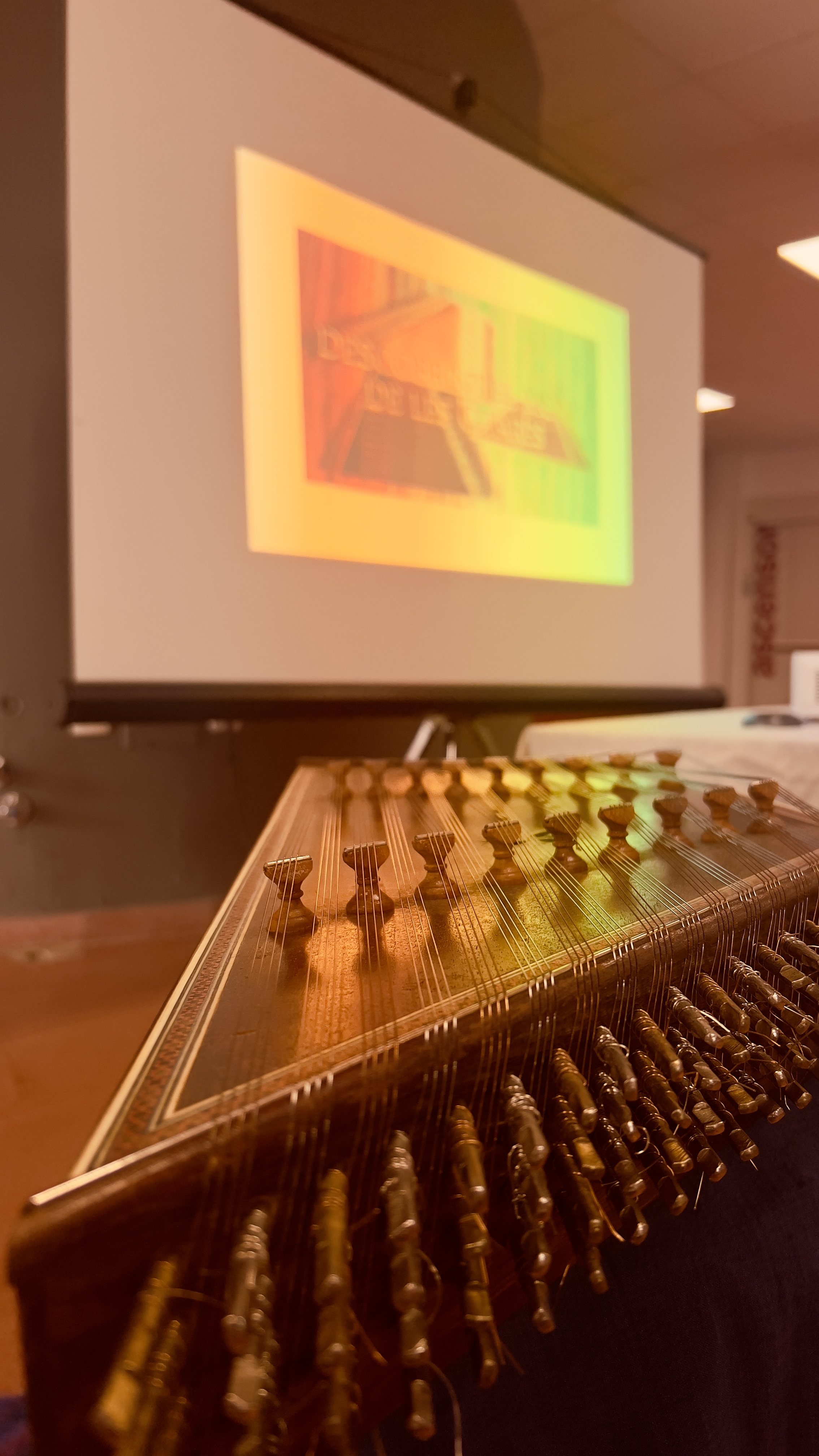 Després de la xerrada, vam tenir el plaer d'escoltar l'execució de diverses peces musicals interpretades amb diferents tipus de cítares. Cada instrument va ser introduït per Santamaría, qui va destacar les seves característiques úniques i el seu ús específic en diferents contextos musicals.
