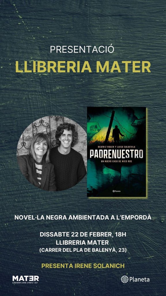 - Vine a escoltar i a conèixer als autors d'aquesta novel·la. La Bea Roger i en Luiso Soldevila i, presentat per la Irene Solanich