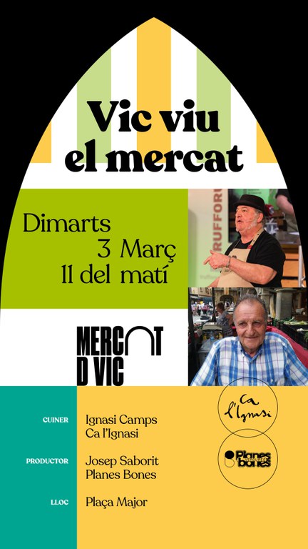 La campanya Vic viu el mercat, s'organitzen tallers de cuina i tastos amb la participació de cuiners de renom de Vic i comarca i productors locals, amb l'objectiu de posar en valor la qualitat i diversitat del producte de la zona en un escenari privilegiat com és el Mercat de Vic, el punt neuràlgic de l'activitat comercial i social de la comarca.