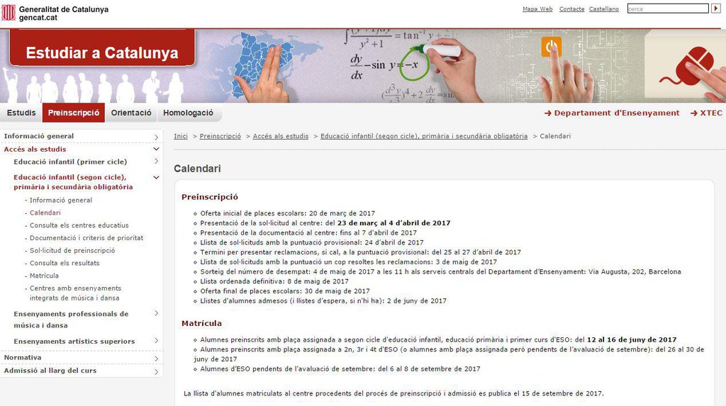 Demà dijous dia 23 de març, i fins el dia 4 d’abril de 2017, s’inicia el període per a la presentació de sol·licituds per als centres de segon cicle d'educació infantil, educació primària, centres integrats i educació secundària obligatòria en el curs 2017/18.