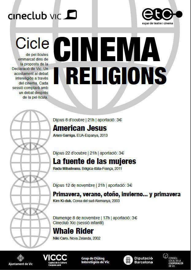 Durant els mesos d’octubre i novembre, el Cine Club Vic i l’Ajuntament de Vic, han organitzat el cicle Cinema i Religions que es projectarà a l’Espai ETC, amb l’objectiu d’afavorir el debat interreligiós a través d’aquesta disciplina.