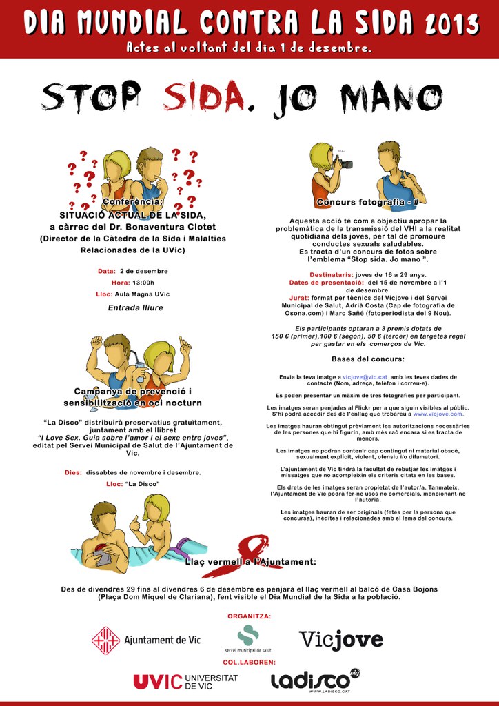 Un any més Vic celebra el dia Mundial contra la SIDA amb diferents propostes. Volem destacar la conferència “Situació actual de la sida”, a càrrec del Dr. Bonaventura Clotet, director de la Càtedra de la Sida i Malalties Relacionades de la UVic, director de l’IRSICAIXA i Cap de la Unitat VIH de l’Hospital Germans Trias i Pujol.