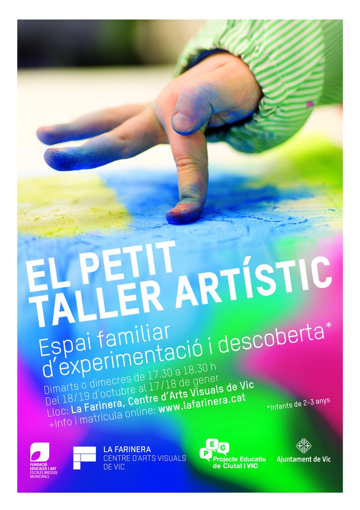 El proper dilluns 26 de setembre a partir de les 16h s’obrirà el període d’inscripció pel nou curs d’El Petit Taller Artístic, que La Farinera_CAVV organitza conjuntament amb les Escoles Bressol Municipals de Vic. Aquest taller és un espai familiar d’experimentació i descoberta per a infants de 2 a 3 anys.