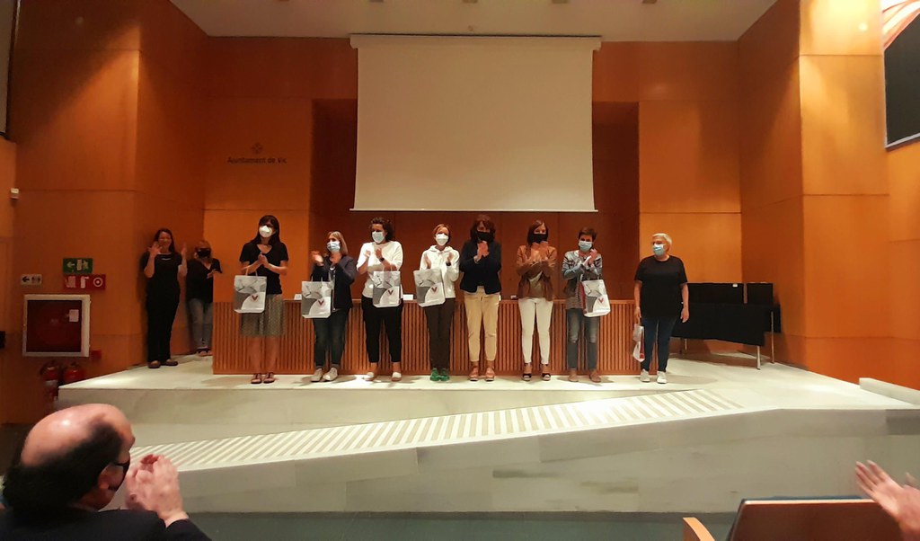 Durant l'acte es va homenatjar el professorat de Vic que es va jubilar el curs passat, com a agraïment a la tasca feta per joves i infants però també per la ciutat. Elisabet Franquesa, regidora d'Educació i Joves, va elogiar la feina vocacional, bàsica i importantíssima que fan els mestres pel conjunt de la societat.
